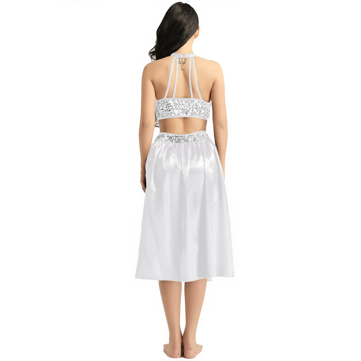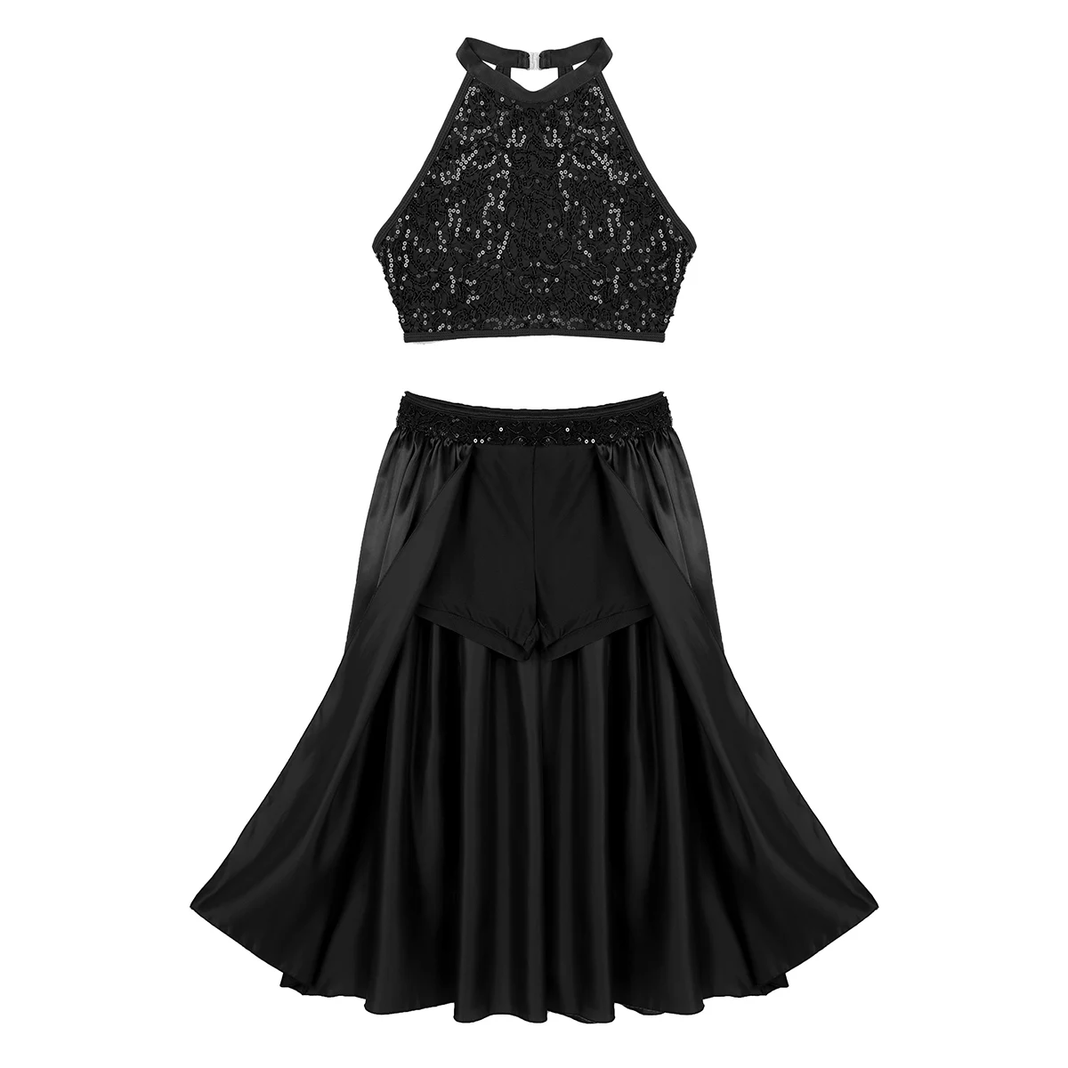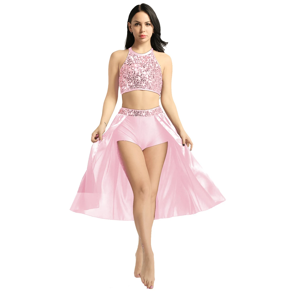 Женское балетное платье, женское блестящее трико, танцевальное платье с лямкой на шее, короткий топ без рукавов и с блестками, балетная юбка