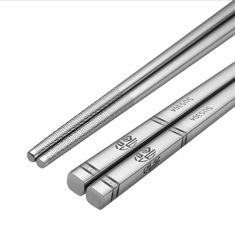 Палочки для еды из нержавеющей стали 304 с лазерной гравировкой, корейские палочки для еды с нескользящей поверхностью, бытовые металлические многоразовые палочки