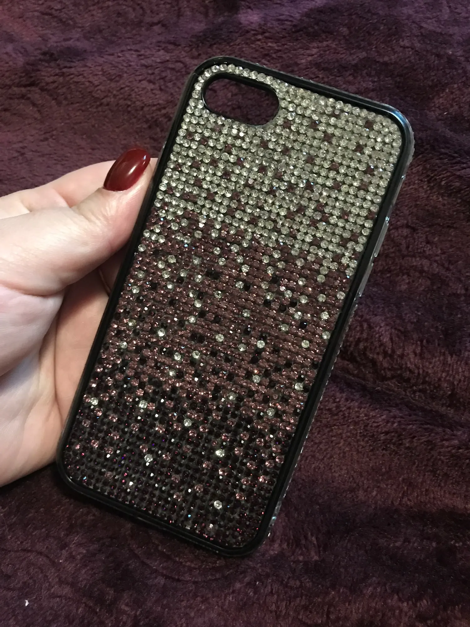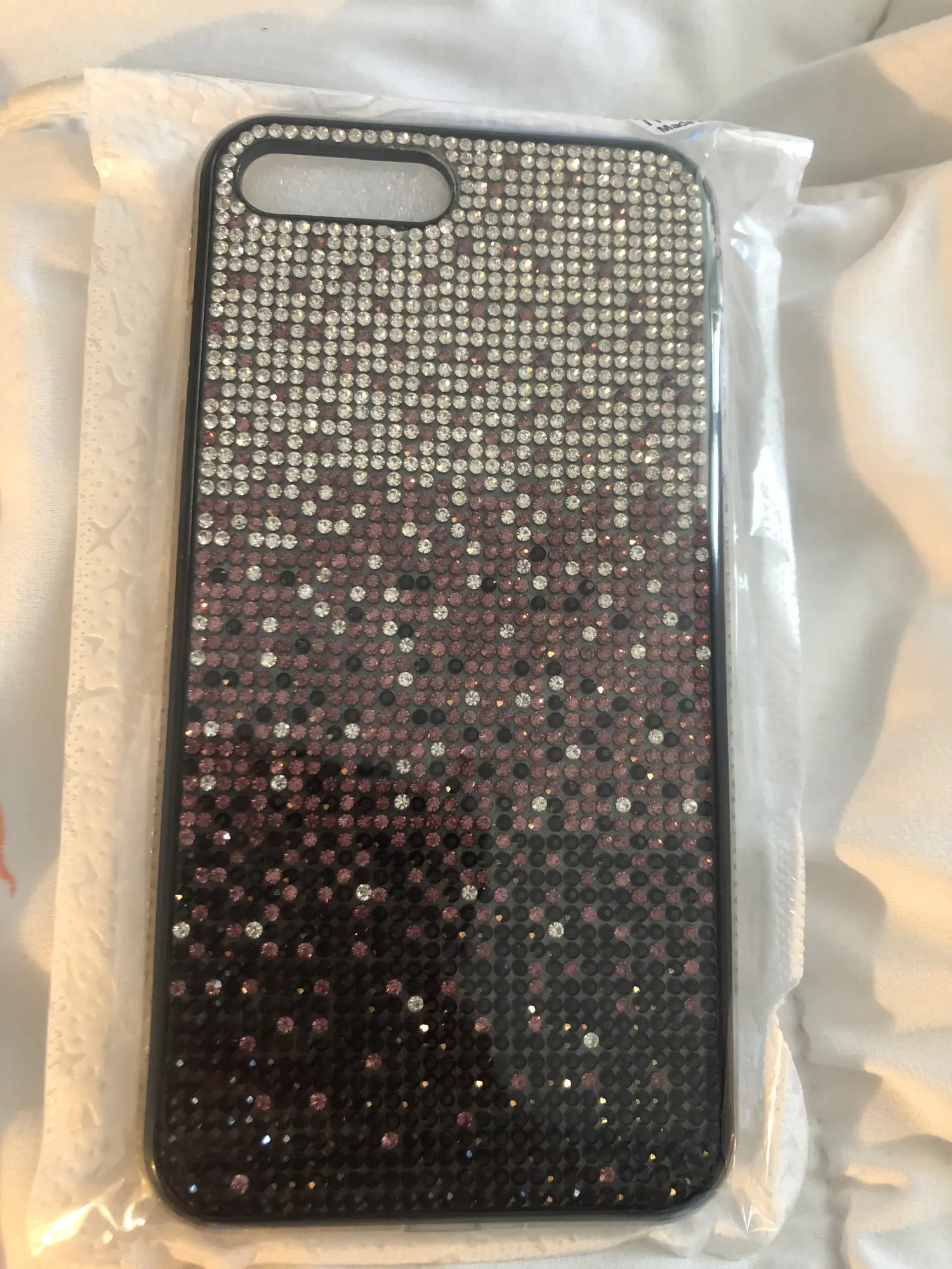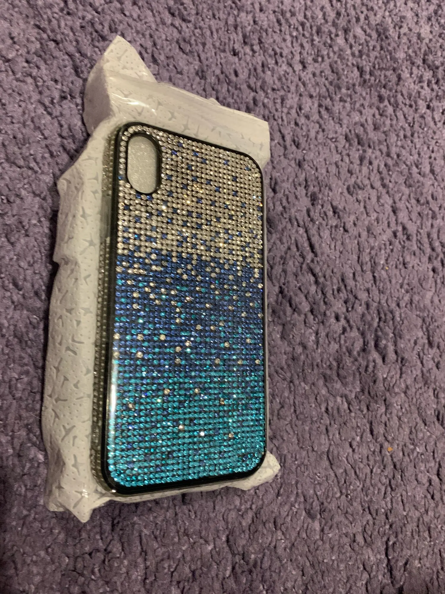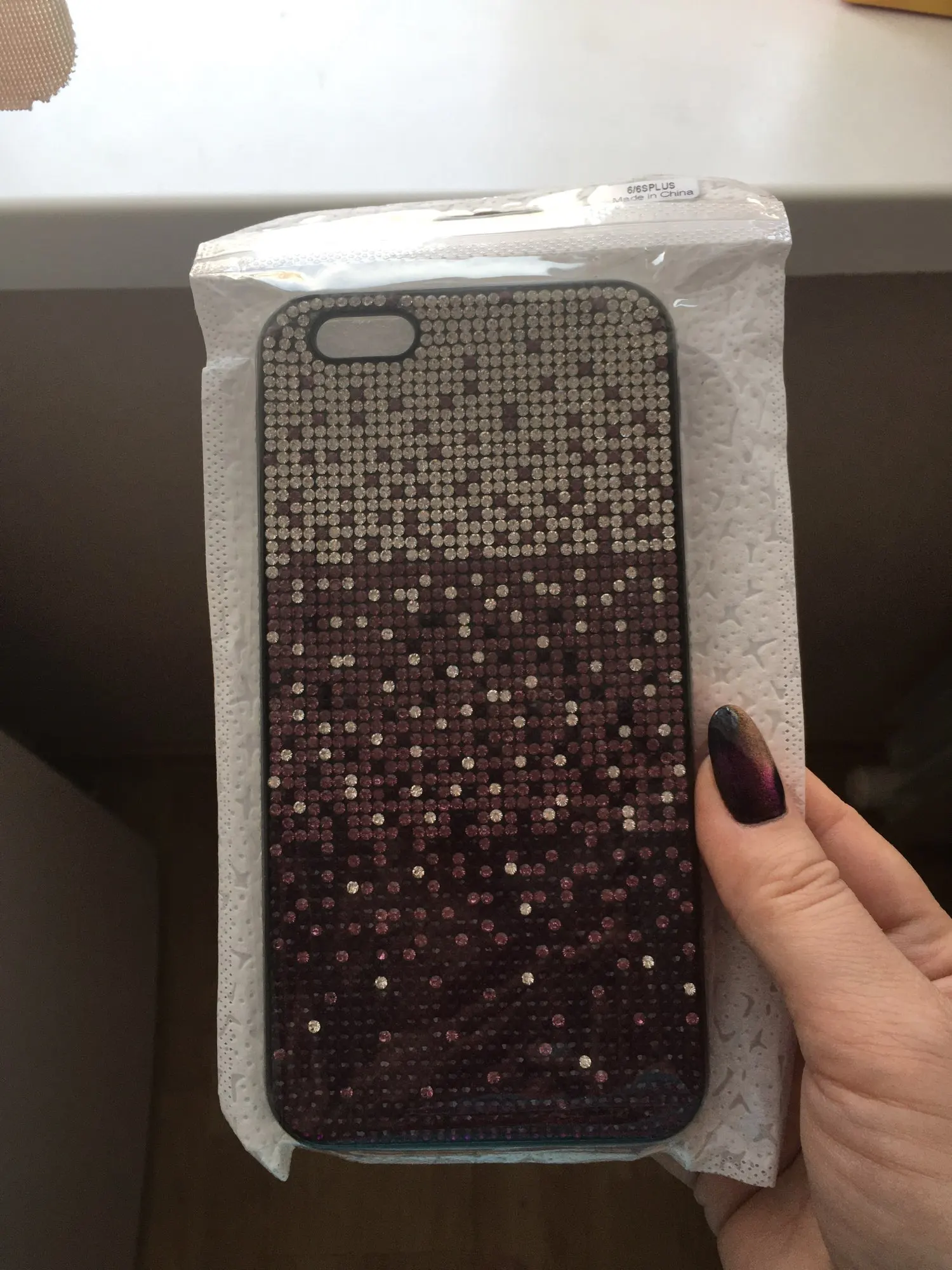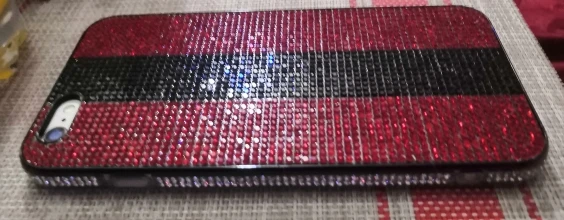 Чехол пришёл почти через 4 недели. Упакован хорошо. Но сделан не очень. Брак по кромке. Стразы отклеились. Цвет соответствует