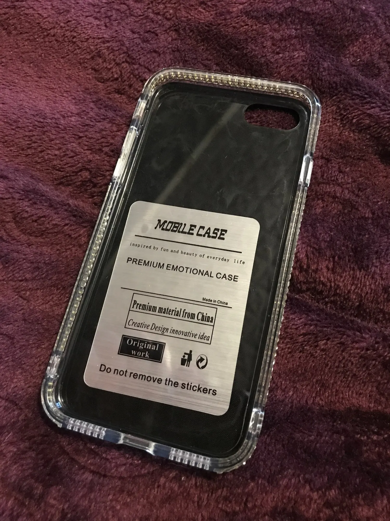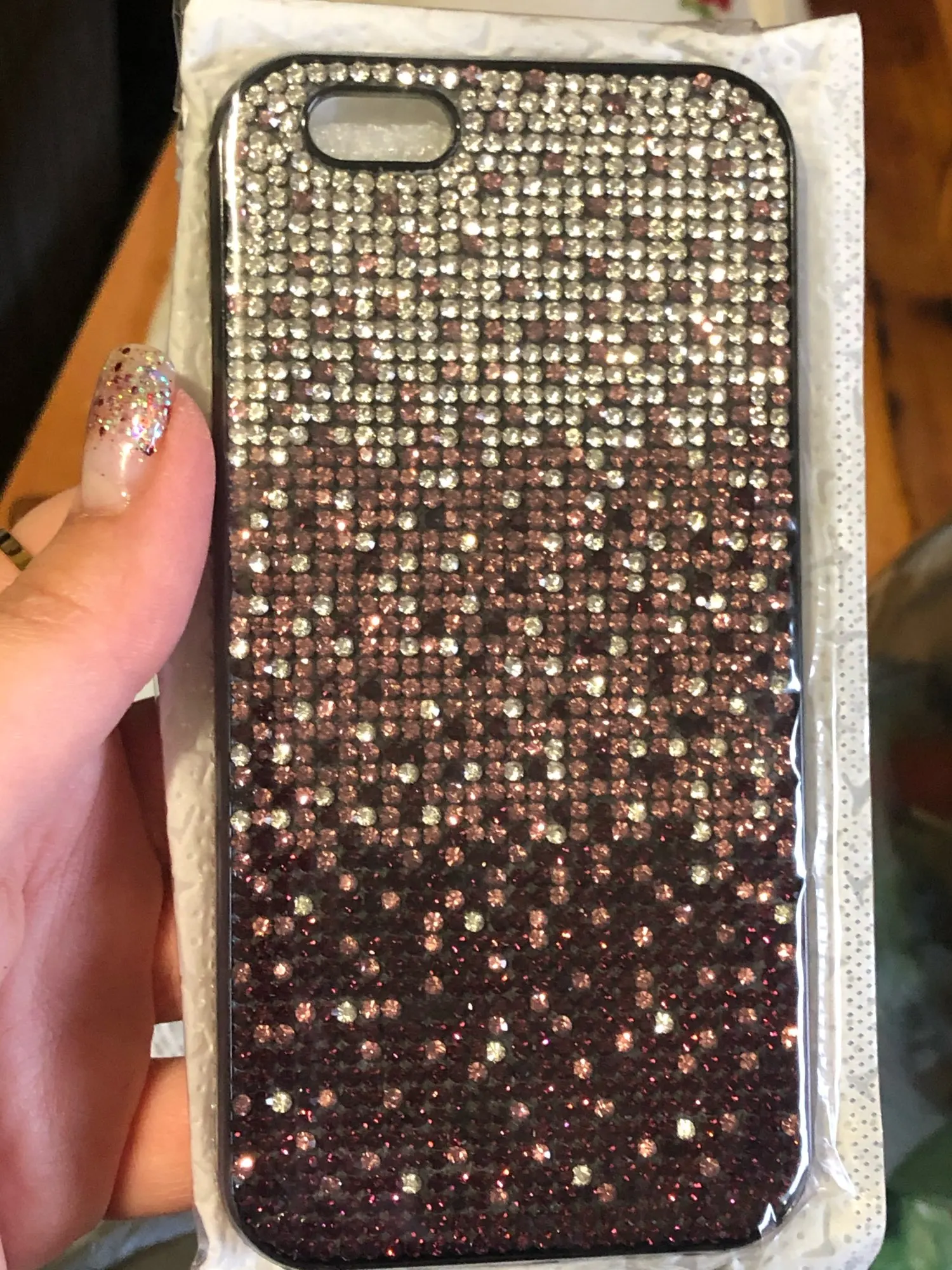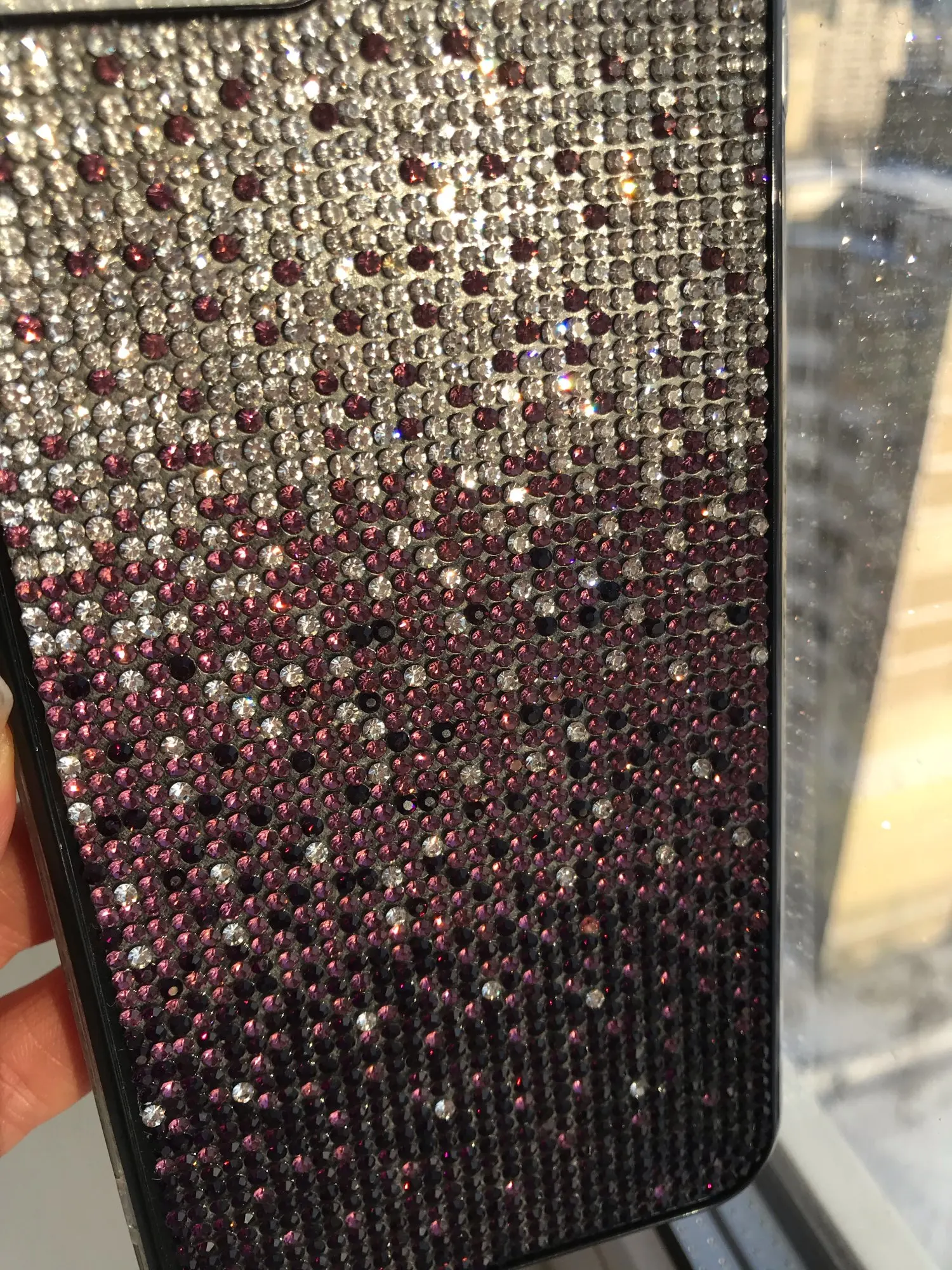 Чехол пришёл почти через 4 недели. Упакован хорошо. Но сделан не очень. Брак по кромке. Стразы отклеились. Цвет соответствует