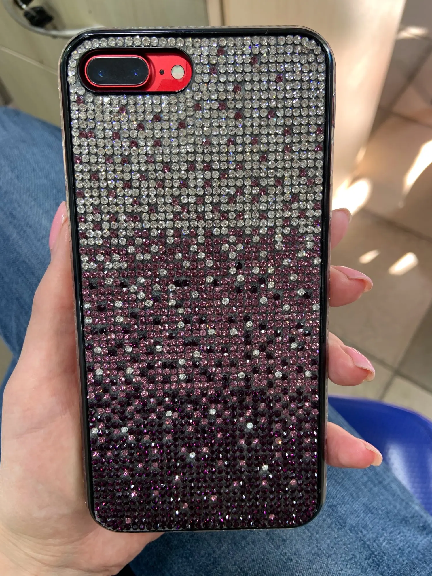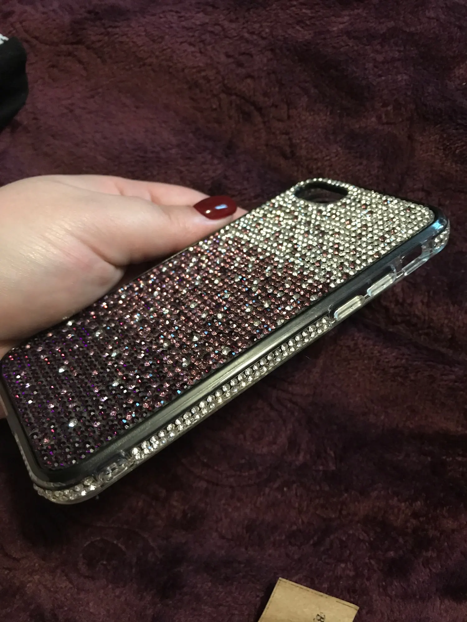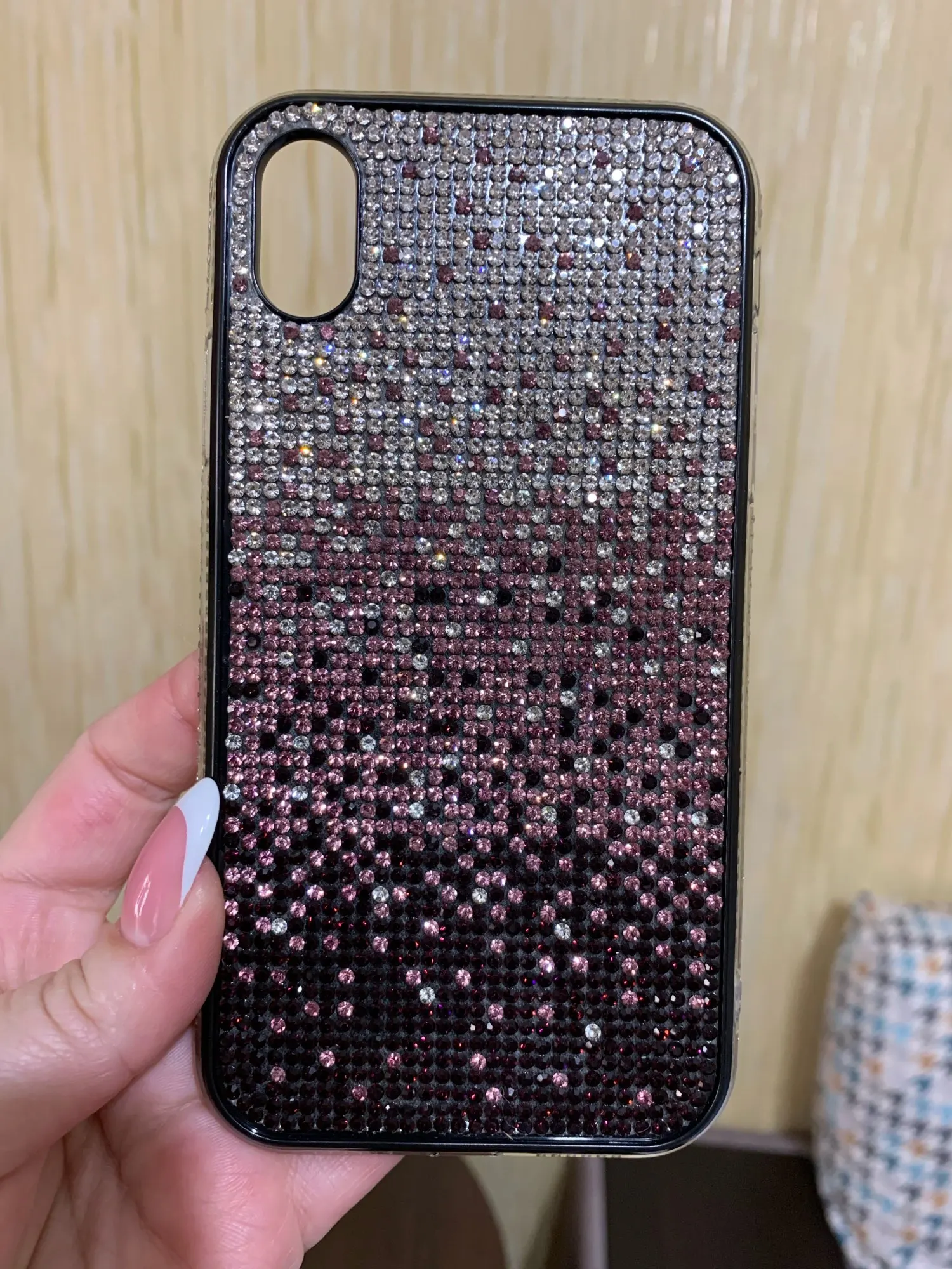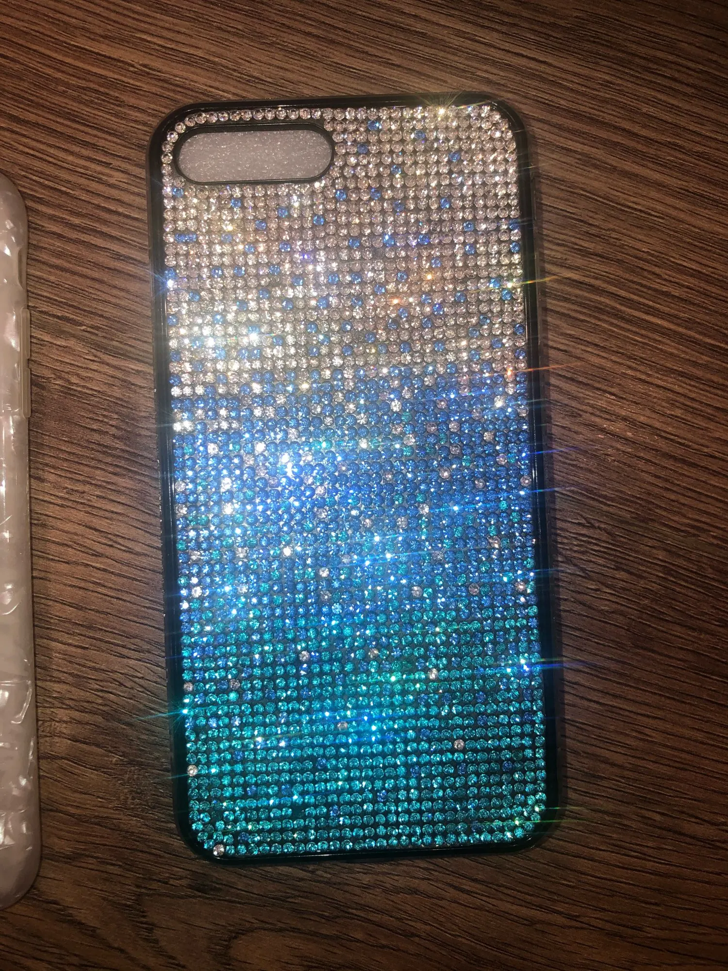 Чехол пришёл почти через 4 недели. Упакован хорошо. Но сделан не очень. Брак по кромке. Стразы отклеились. Цвет соответствует