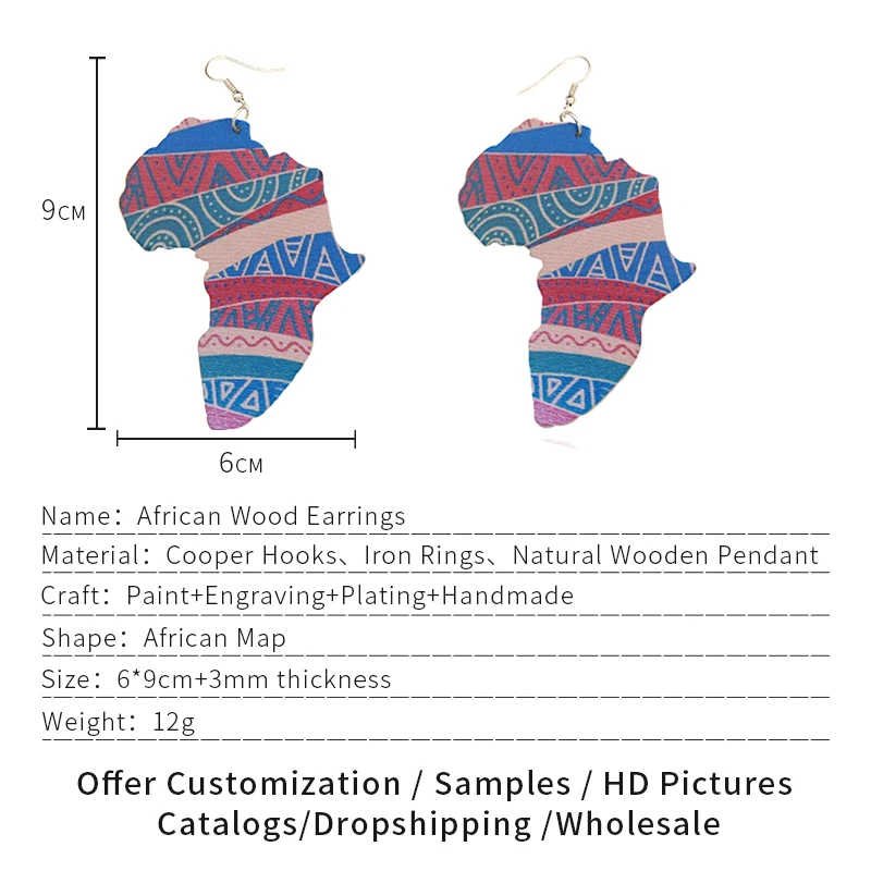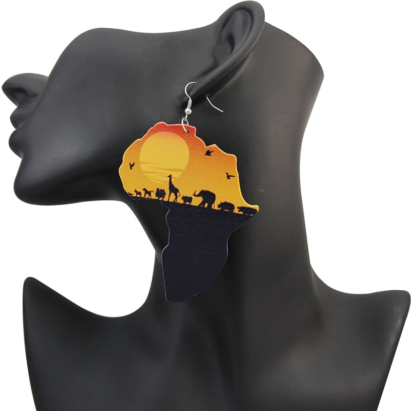 SOMESOOR 6 видов конструкций Африканская Карта, деревянные серьги-подвески, объединенные цвета, афроцентрическая Этническая культура, оригинальные эко животные, краска, ювелирные изделия