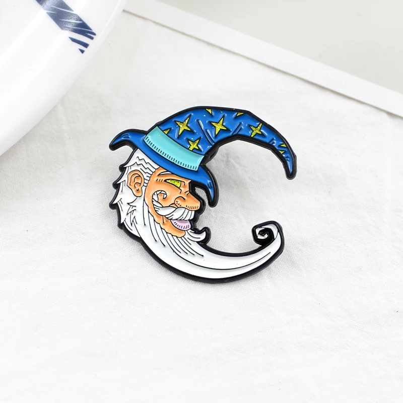 Детская Брошь на лацкан, голубая Кепка с Луной и белой бородой