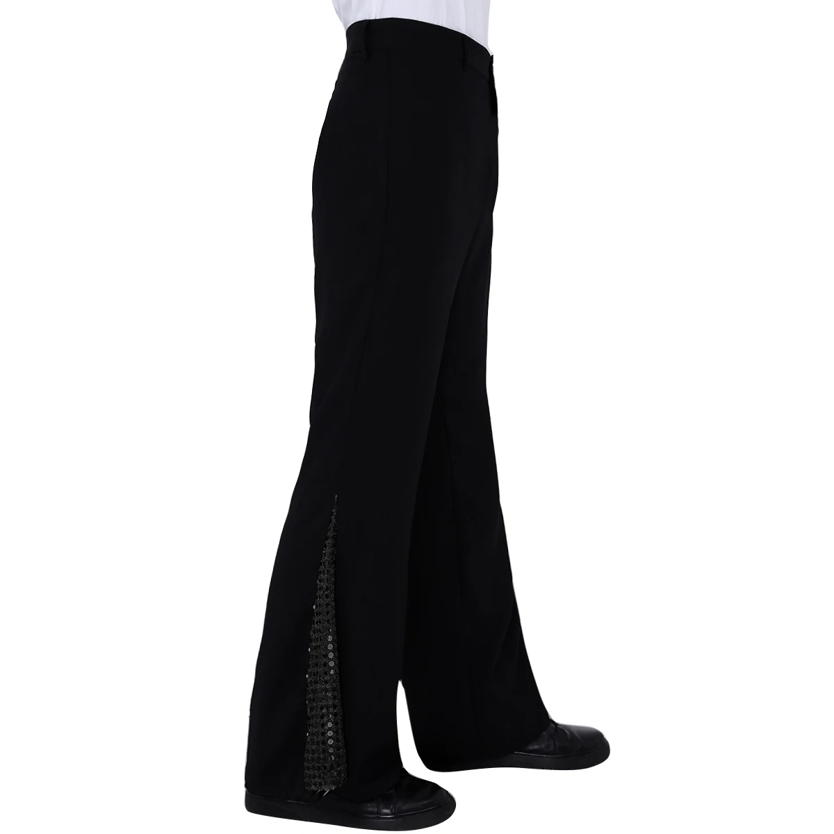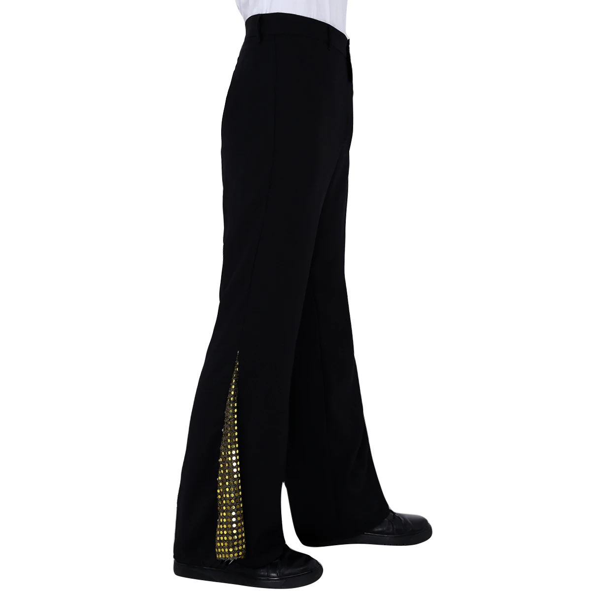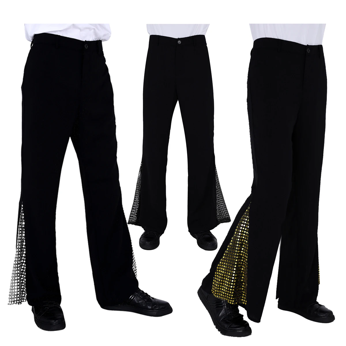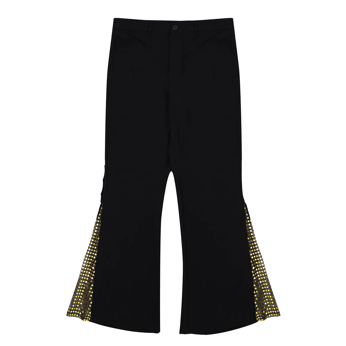 TiaoBug мужские ретро 70s брюки в стиле диско, сценический костюм для выступлений, танцевальный костюм со средней талией, расклешенные Бальные брюки со стразами