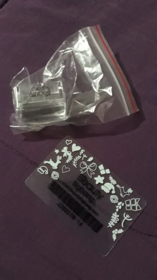 Посылка пришла целая. Штамп работает только с лаками для стемпинга и не на всех пластинах. Жаль, что без крышки. А так симпатичный, удобно то, что пластмассовое основание не высокое, хорошо близко виден ноготь.
