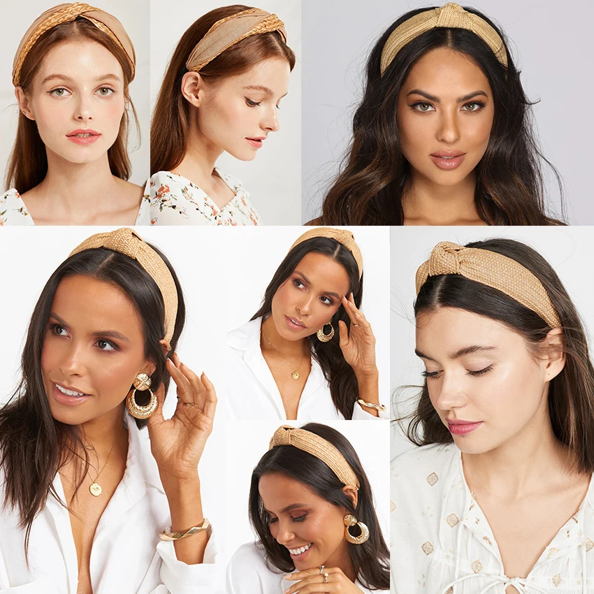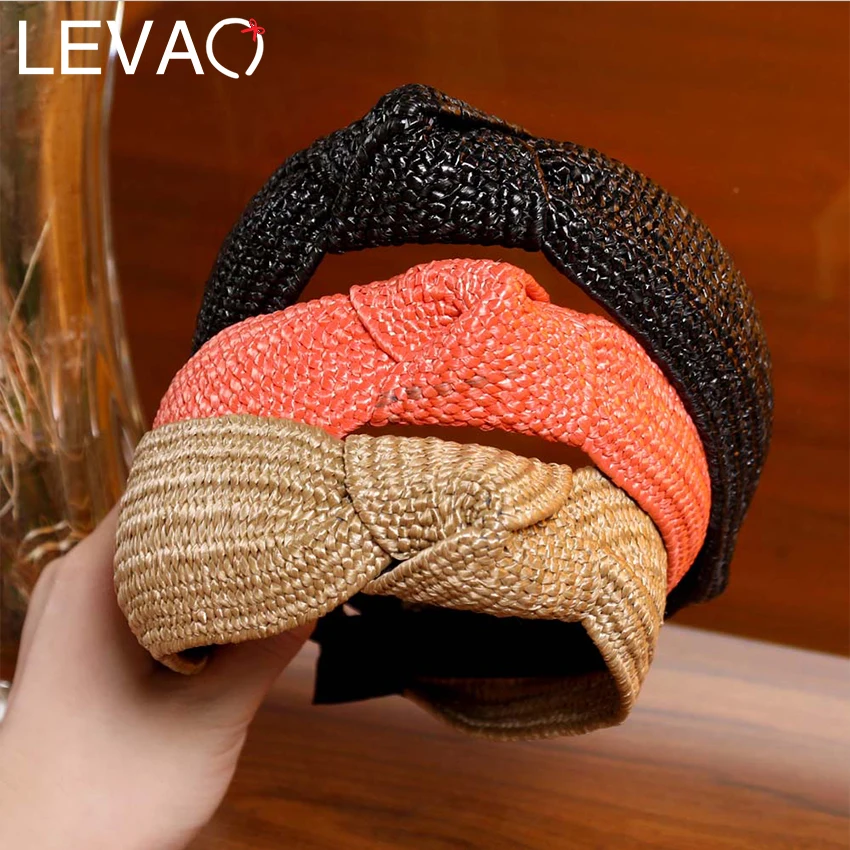 LEVAO Новая женская лента для волос, соломенное плетение, завязанная повязка, богемная широкая поперечная резинки для волос с узлом, обруч, ободок, аксессуары для волос ручной работы