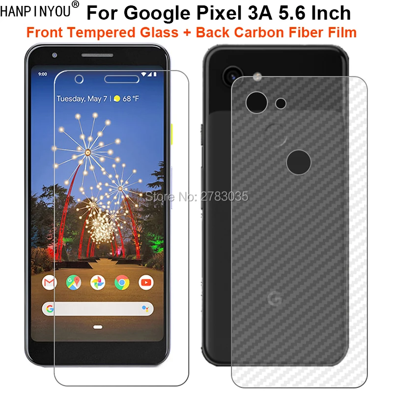 Для Google Pixel 3A 5,6 "1 комплект = мягкая задняя пленка из углеродного волокна + ультратонкое прозрачное закаленное стекло премиум-класса, защита для переднего экрана