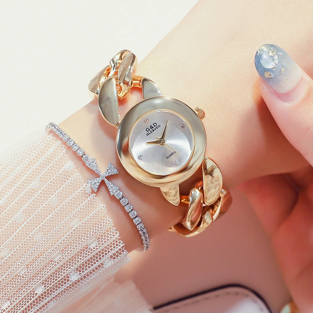 Женские кварцевые наручные часы G D, с браслетом и кристаллами, 2019
