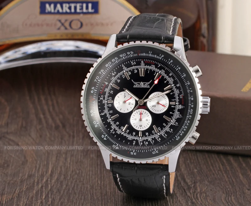 Jargar, новинка 2019, мужские автоматические наручные часы серебристого цвета с черным ремешком из натуральной кожи, подарок для мужчины