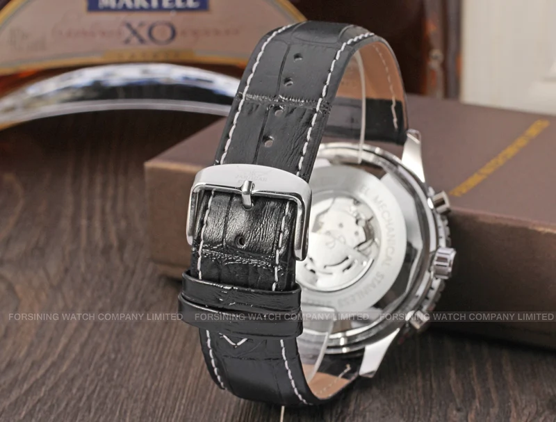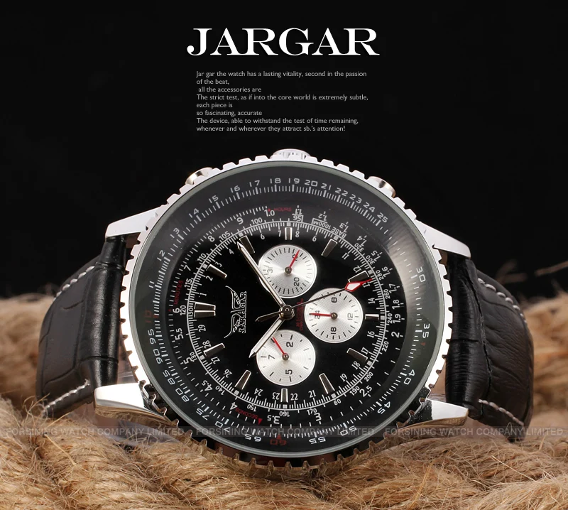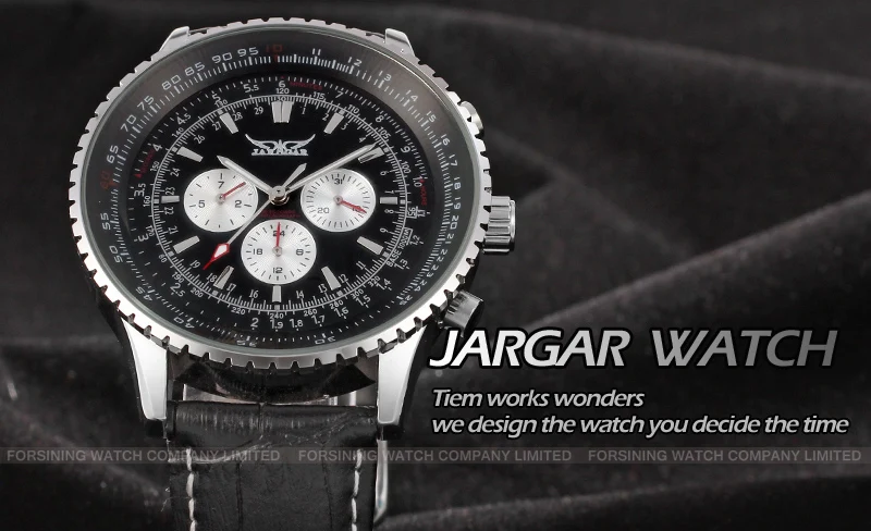 Jargar, новинка 2019, мужские автоматические наручные часы серебристого цвета с черным ремешком из натуральной кожи, подарок для мужчины