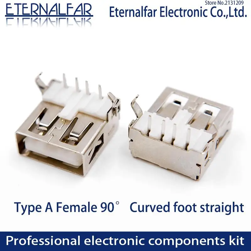 Соединитель интерфейса USB 2,0, гнездо типа A, гнездо 90, изогнутая прямая патч, прямая игольчатая игла, сварочный провод сделай сам
