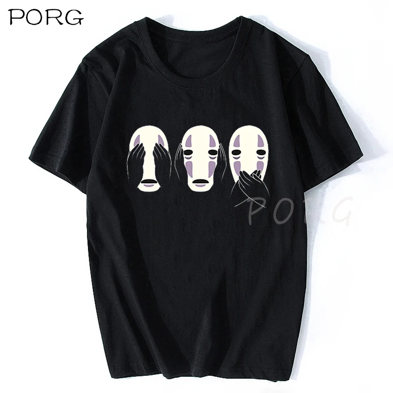 Футболка мужская без лица из японского аниме, мультяшная летняя рубашка в стиле Миядзаки Хаяо из мф дух из аниме, Черная