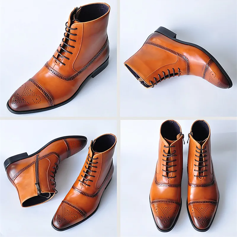 Мужские кожаные ботинки-броги Misalwa, ботинки ручной работы, с выс...