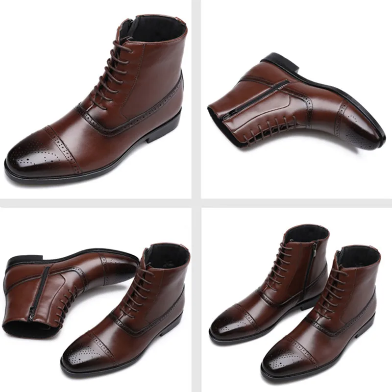 Мужские ботинки на шнуровке, с боковой молнией и перфорацией