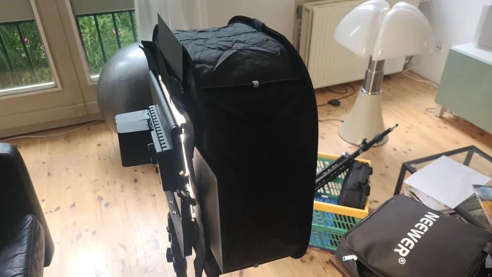 Отличный компактный софтбокс. Пришел целым, все в комплекте, функцию свою выполняет хорошо.