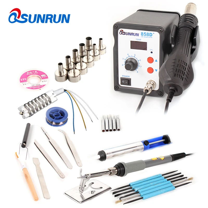 Станция горячего воздуха 858D Plus с цифровым дисплеем, тепловые пушки с воздушным соплом, экстрактор ИС и другие дополнительные комплекты