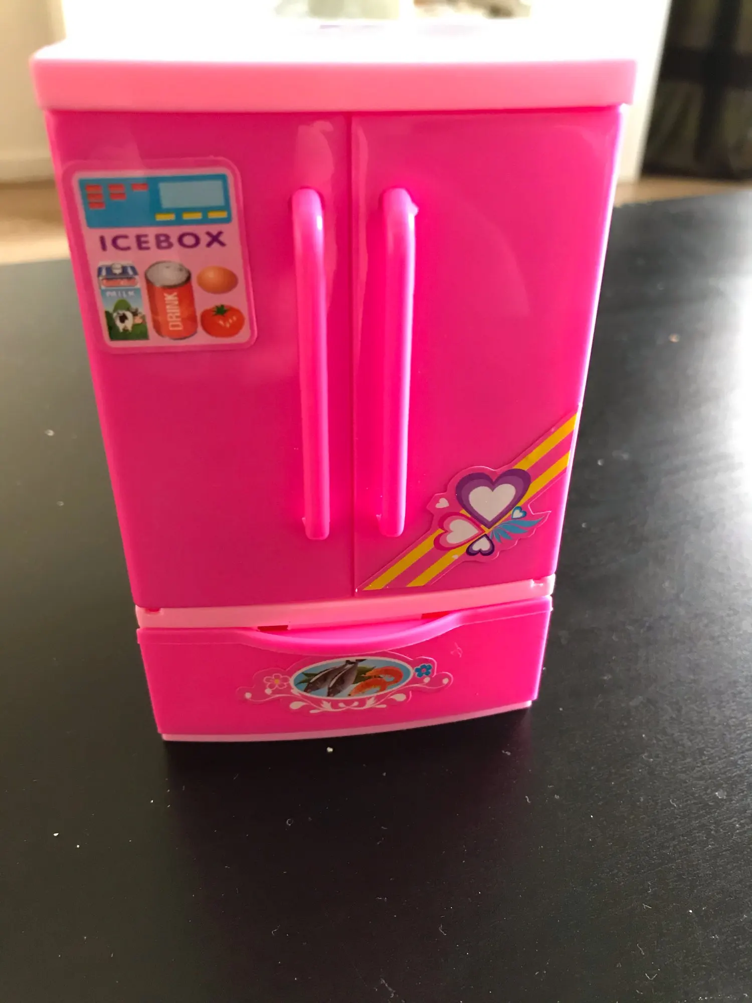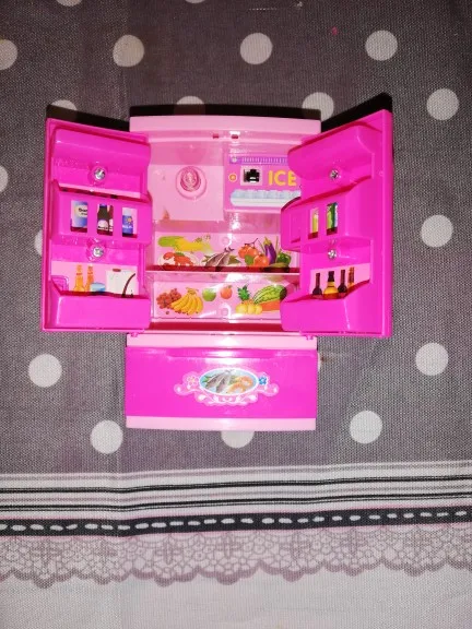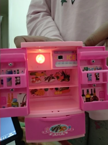 Идеальная игрушка. Точно так же, как показано на картинке. Мы можем вставить батарею АА, поэтому свет в холодильнике открывается, когда двери открываются и выключаются, когда мы закрываем двери (реалистично). Моя дочь любит это для нашего дома Барби