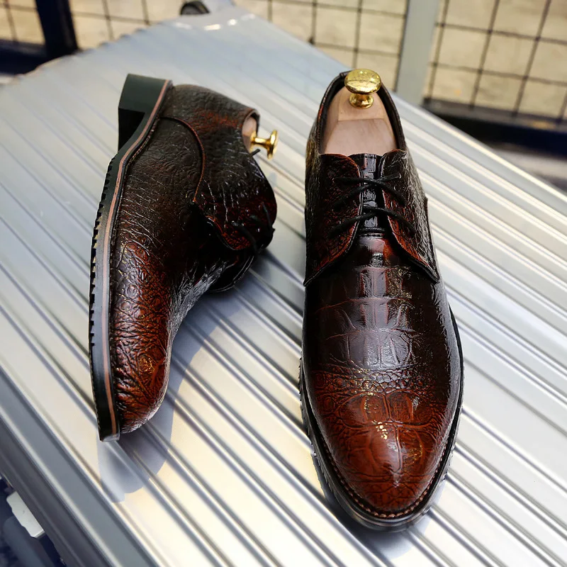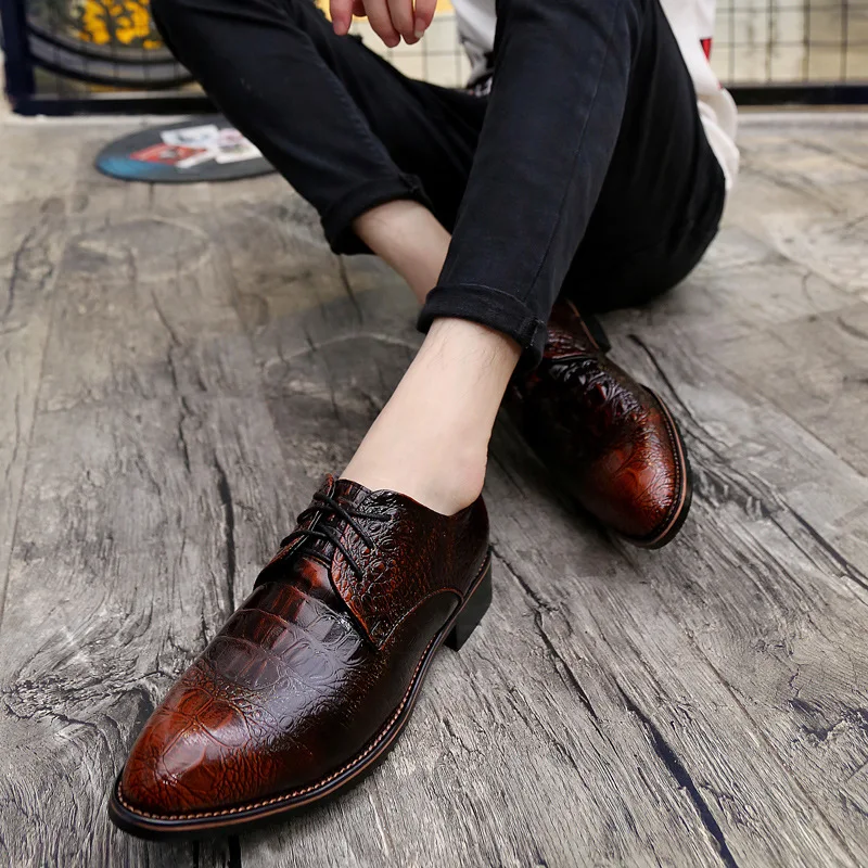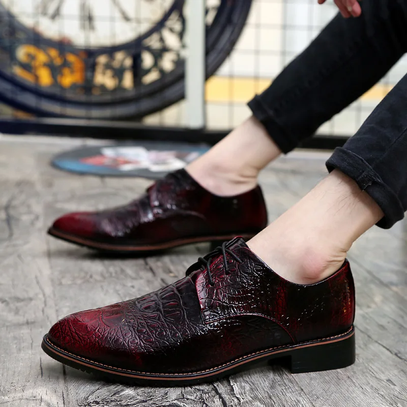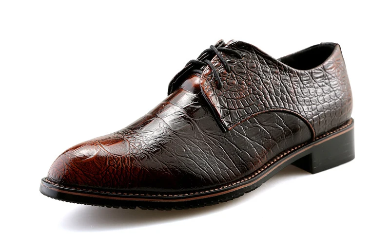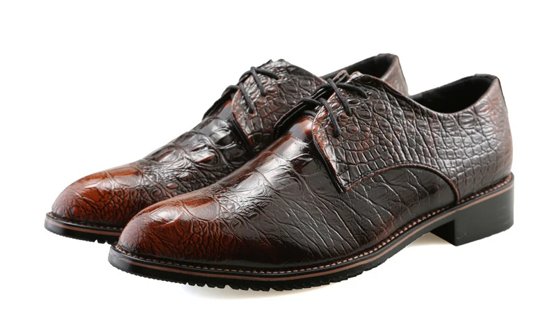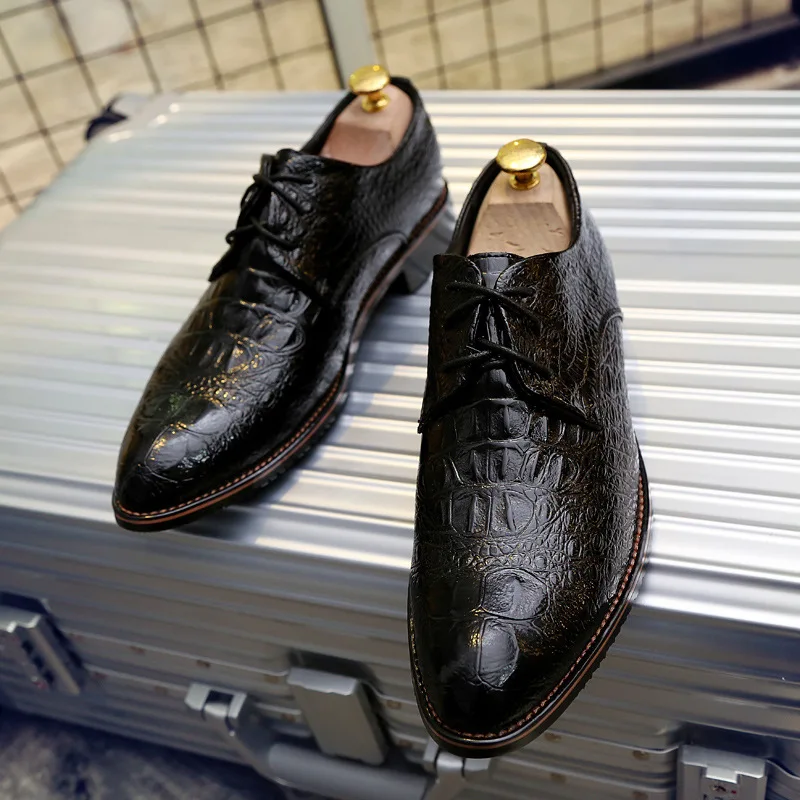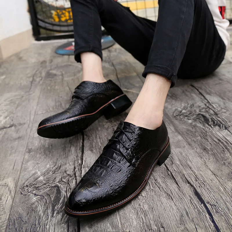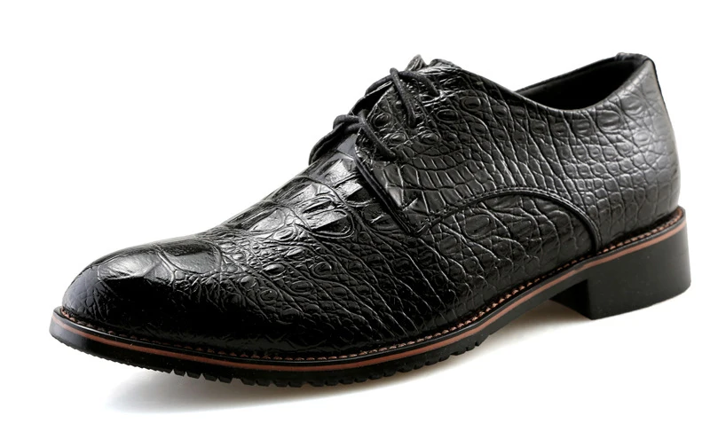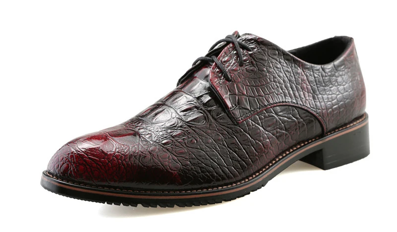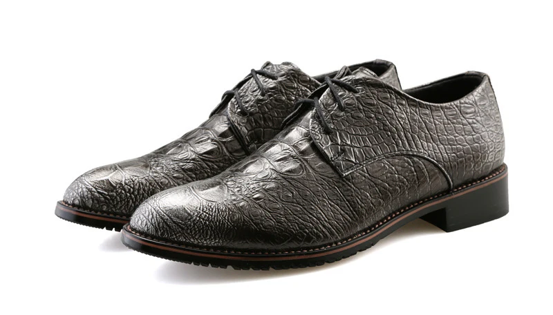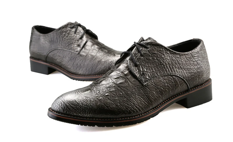 Модные Мужские модельные туфли из крокодиловой кожи, мужские повседневные оксфорды с острым носком, мужские деловые туфли-оксфорды на шнуровке
