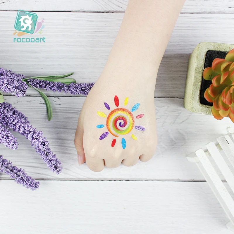6x6 см маленький красочный Высокое решение боди-арт красная роза цветы круг дизайн временный поддельная флеш-татуировка стикер Taty