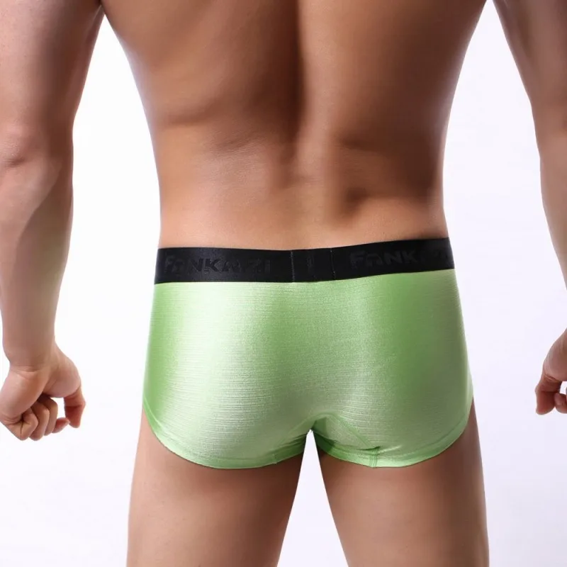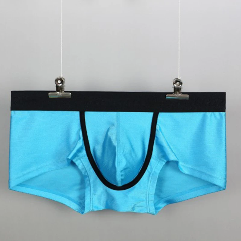 Нижнее белье мужское сексуальное Новинка мужские шелковые яркие блестящие мини-боксеры мужские трусы с мешочком для отпугивания модные атласные розовые синие трусы брендовые