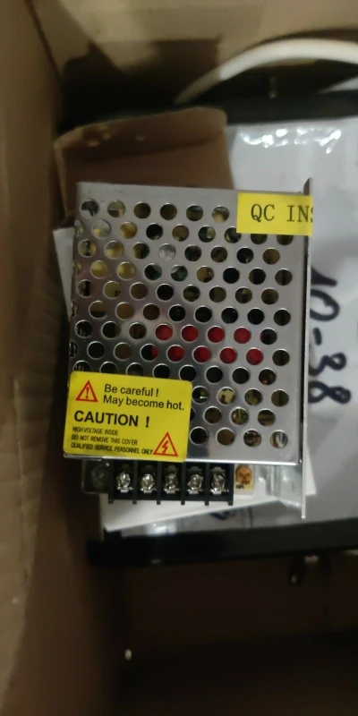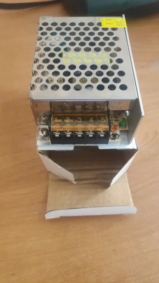 Доставка 25 дней в составе сборной посылки, несколько заказов побросали как попало в один пакет. Несмотря на хорошую упаковку заказа с данным блоком питания верхняя крышка была изрядно помята. Выправил. Напряжение без нагрузки 5.15v.