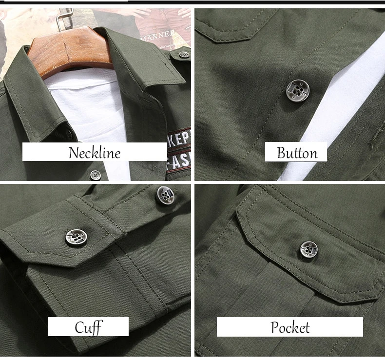 Рубашка WBDDT Мужская в стиле милитари, хлопок, хаки, Повседневная приталенная, с карманами, с длинным рукавом, винтажная куртка, уличная одежда, Прямая поставка