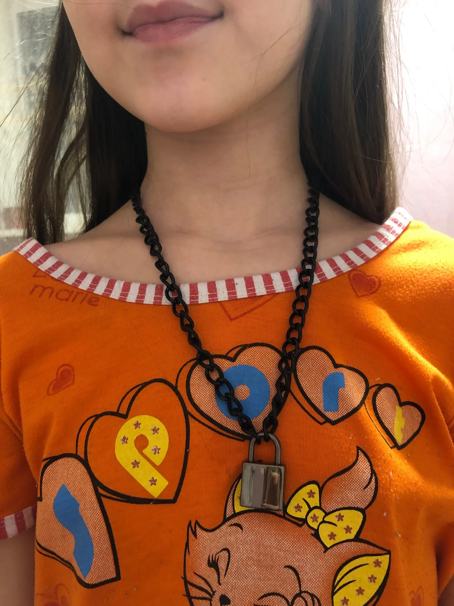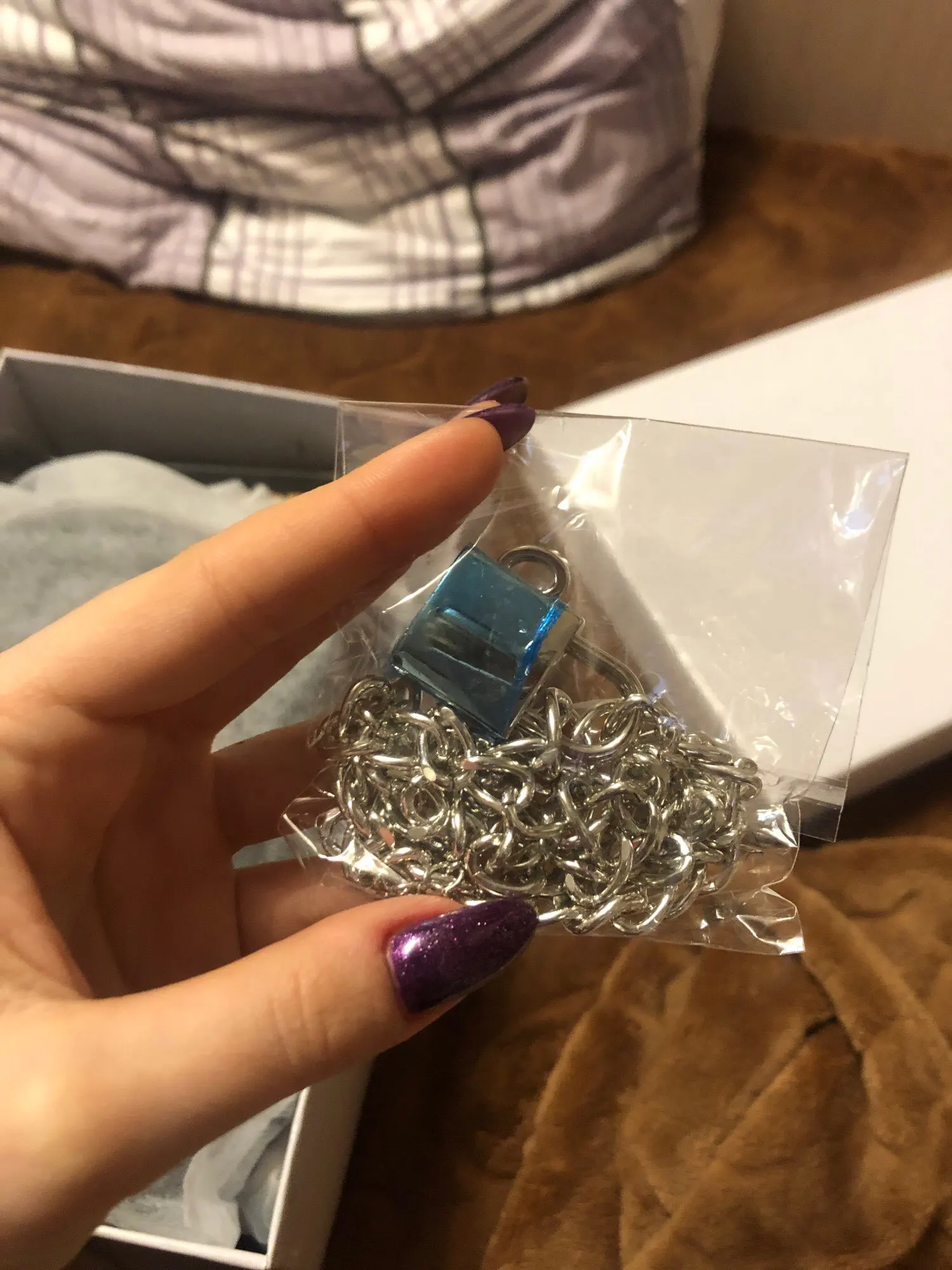 Ожерелье просто КЛАСС! Смотрится - сногсшибательно, закажу ещё одно такое га сумку! Ключик реально открывает замочек!!! На замке сверху была защитная плёнка, синего цвета. Сзади есть застёжка и можно регулировать длину ожерелья. Доставка быстрая, рекомендую !