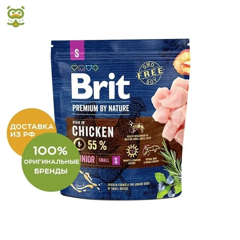 Корм Brit Premium by Nature Junior S для щенков мелких пород, Курица, 1 кг.