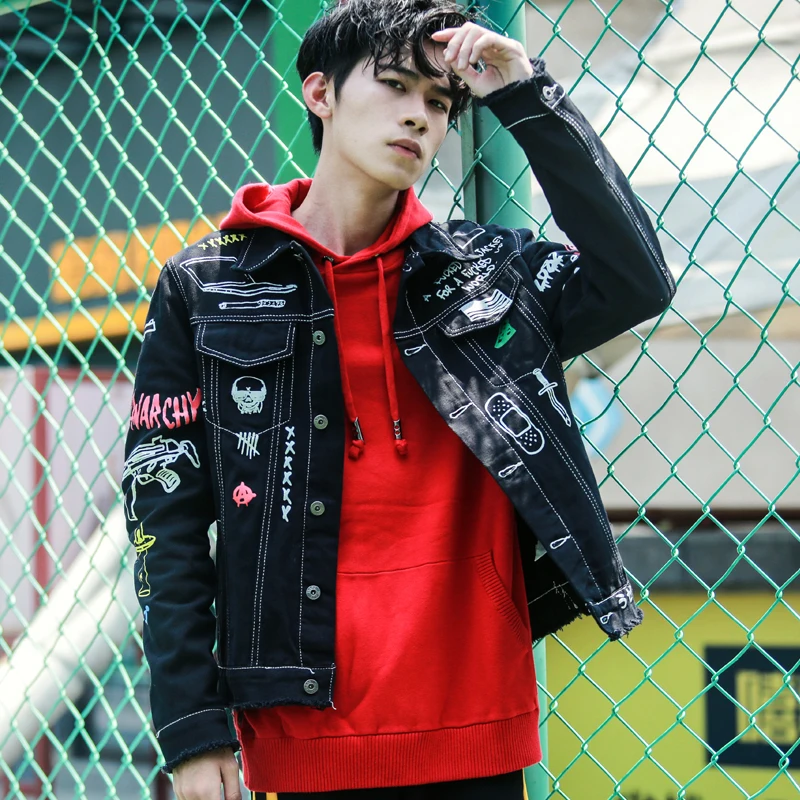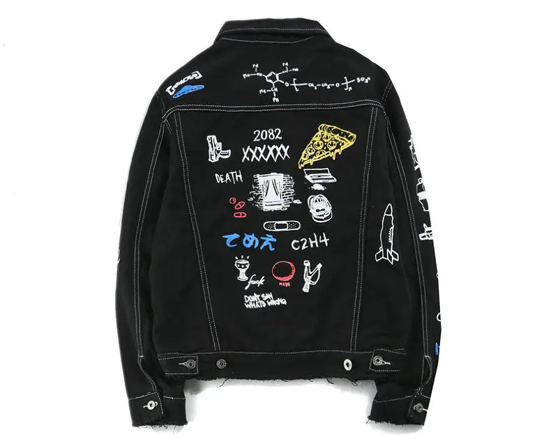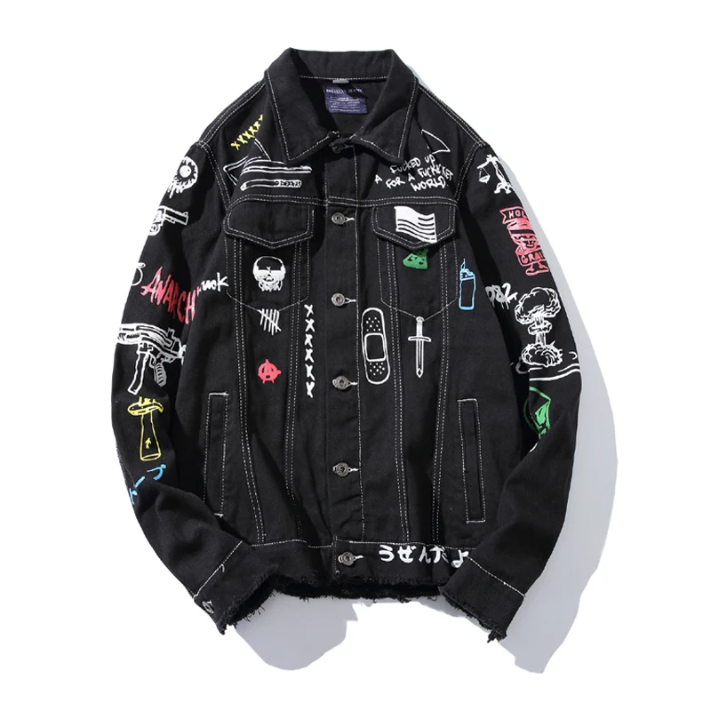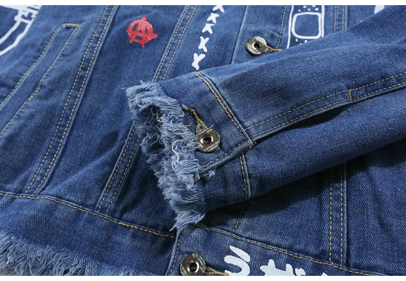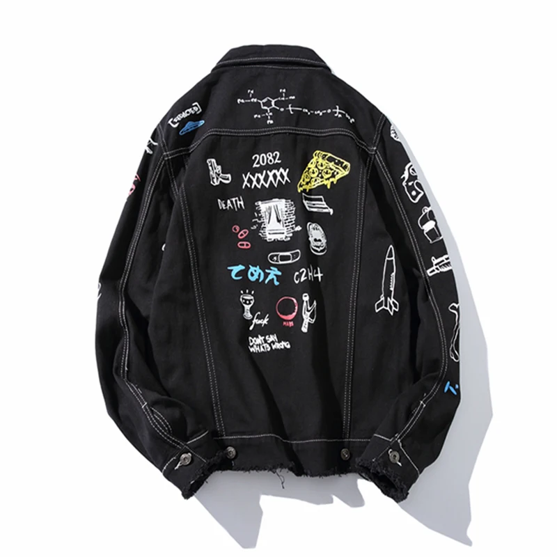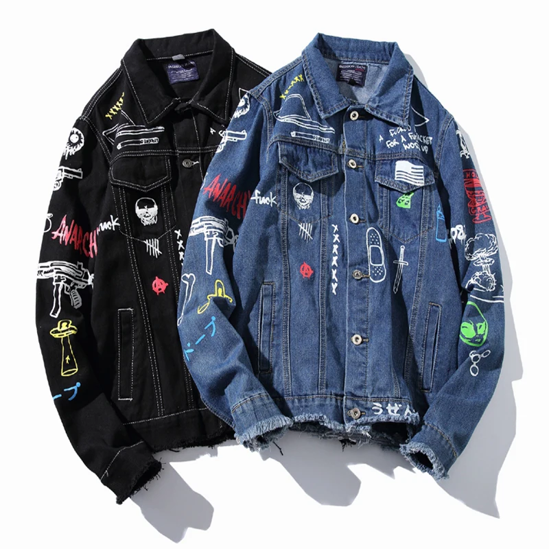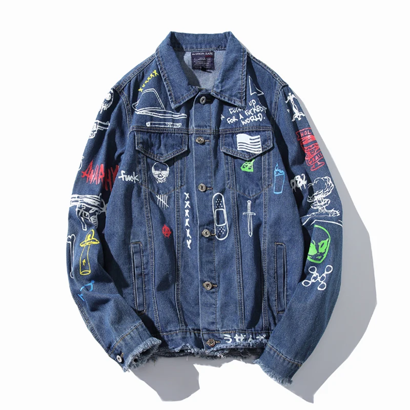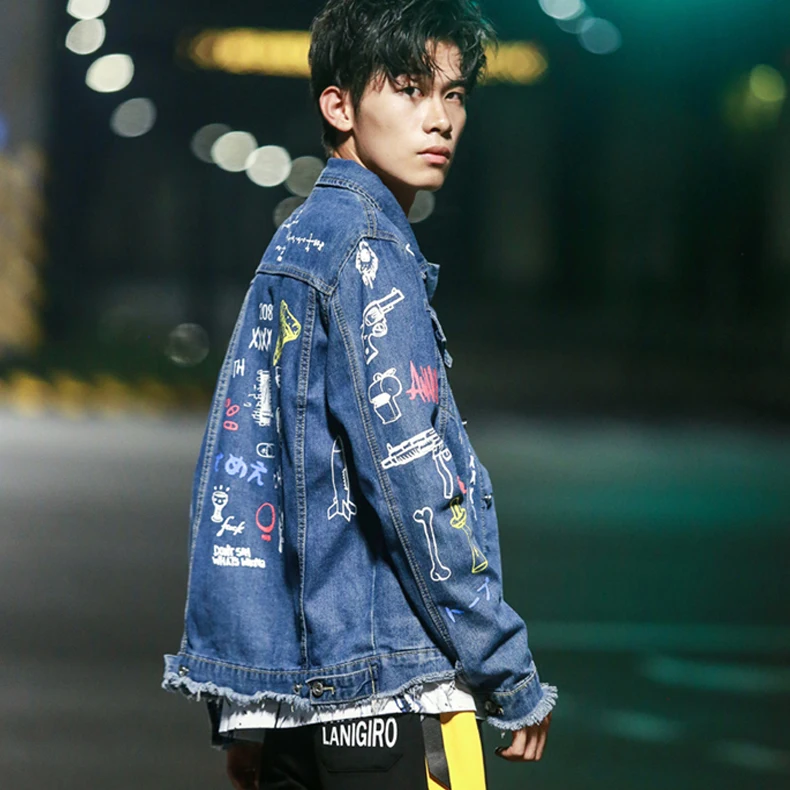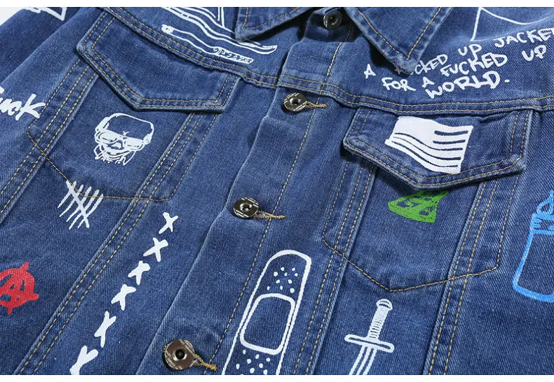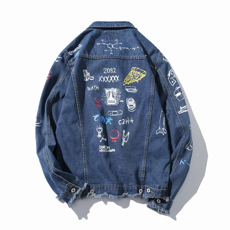 Новая модная Стильная мужская джинсовая куртка с принтом в стиле хип-хоп, повседневная Осенняя мужская джинсовая куртка, уличная одежда большого размера