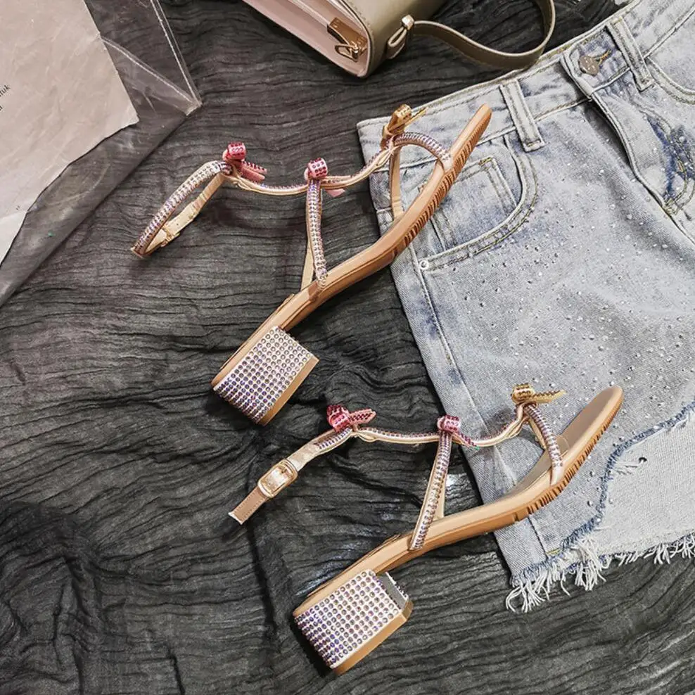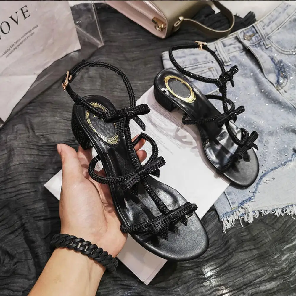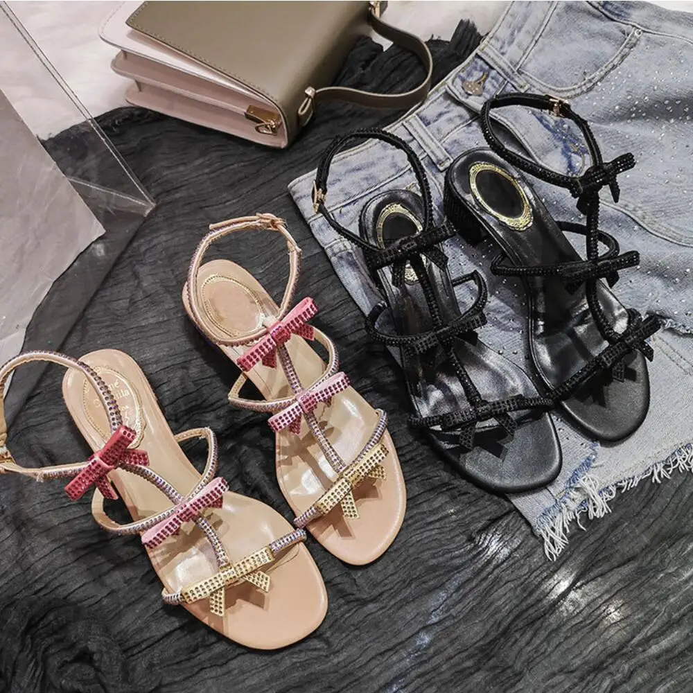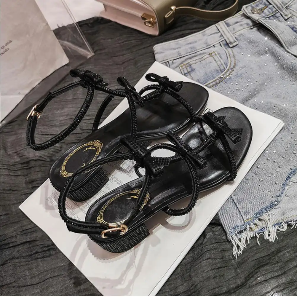 Женские босоножки с бантом Koovan, сандалии со стразами на толстой подошве в римском стиле с открытым носком, лето 2019