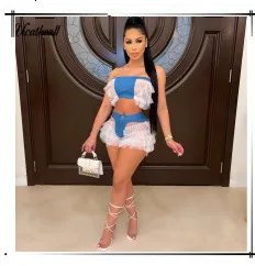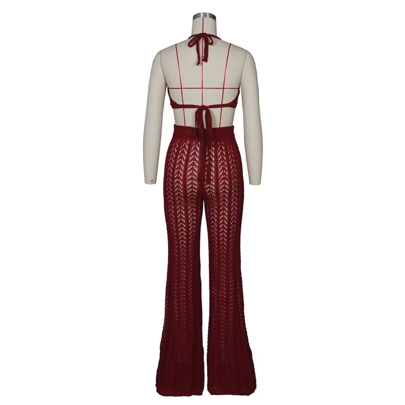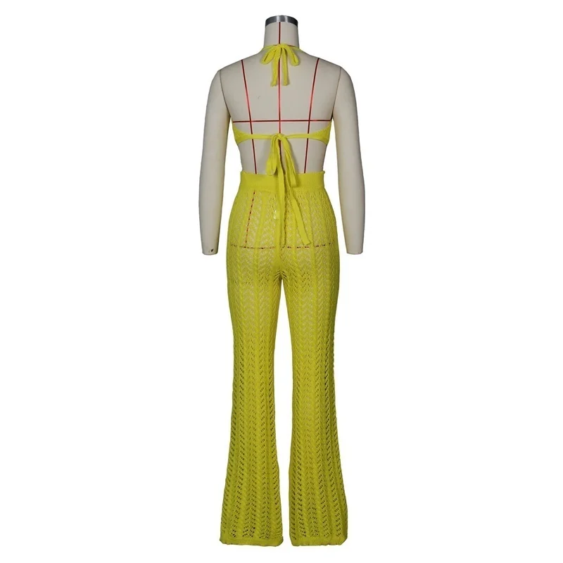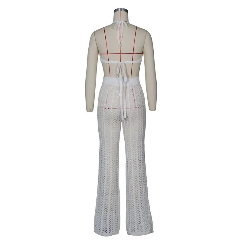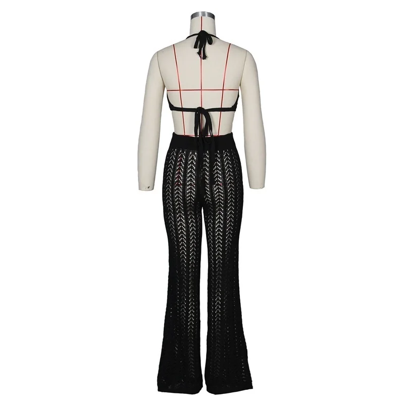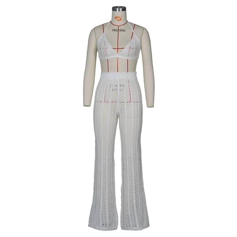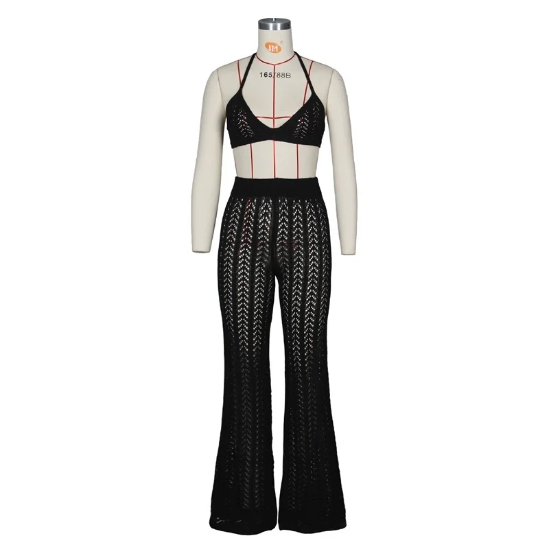 Комплект из двух предметов Женский, сетчатый, пикантный прозрачный, для ночного клуба, с бюстгальтером, топом и брюками, пляжный костюм из двух предметов, лето