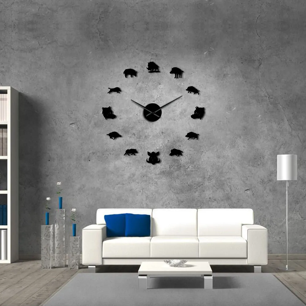 Sus Scrofa Wild Boar фигурки, настенные зеркальные наклейки, DIY гигантские настенные часы, большие висячие часы с свиньей Свинкой, настенные часы, охотник, подарки