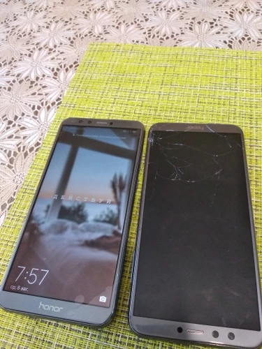 стекло не оригинальное. нет надписи honor. плохо проклеян корпус рамки просвечивает. если будете брать то берите без рамки. покупкой не доволен, спор открыть не успел. так же сам экран работает плохо, чтобы напечатать текст без исправлений не получится