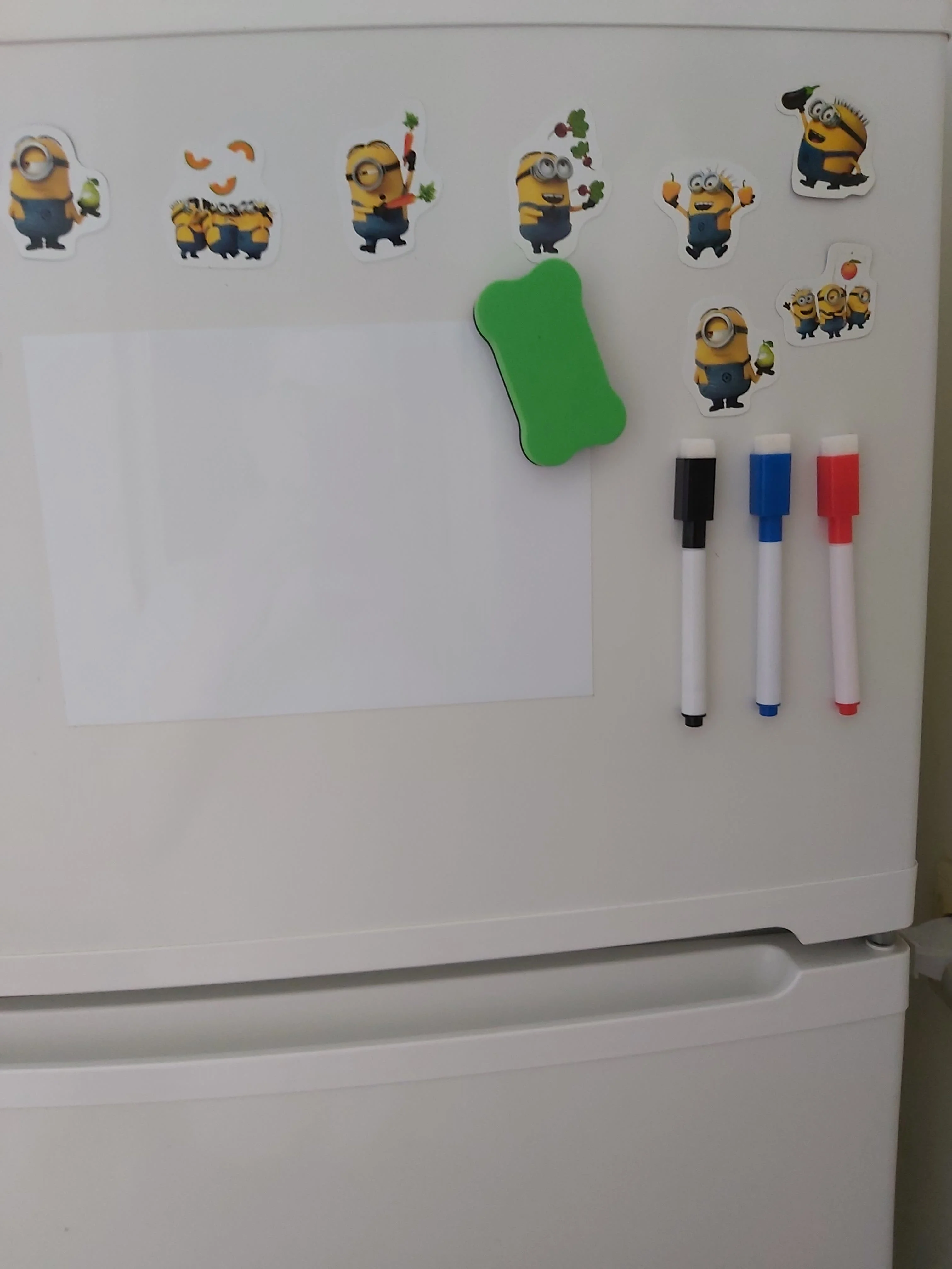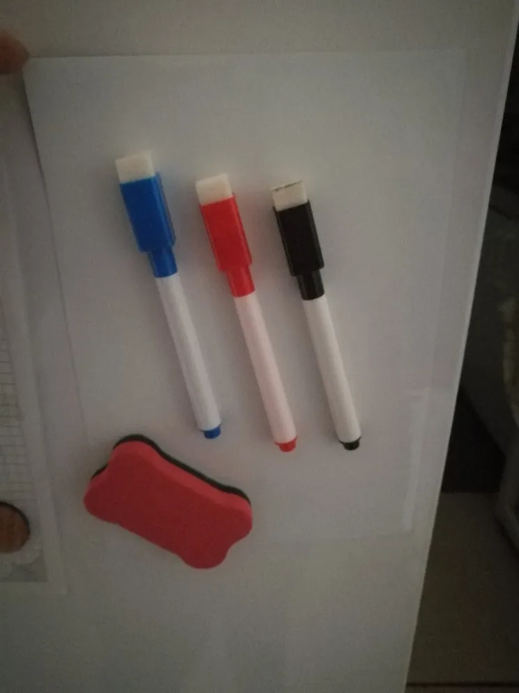 Дошла быстро, отлично держится на холодильнике, маркеры все пишут