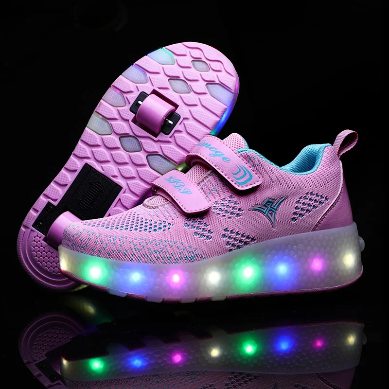 Кроссовки детские, розовые, синие, красные, с USB-зарядкой, на двух колесах
