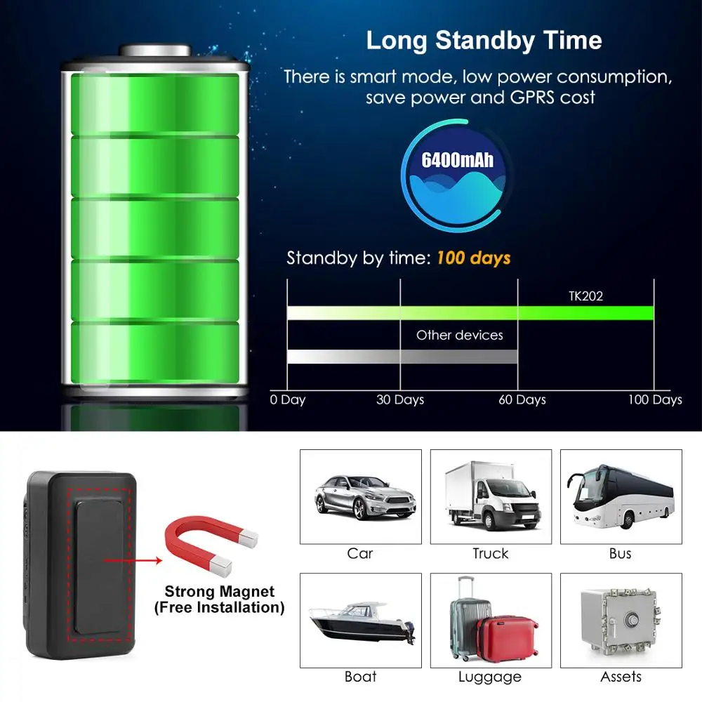 4.Продолжительное время работы в режиме ожидания:: Он имеет встроенный 3,7 в6400 мАч/4400 мАчЛитий-ионный аккумулятор, может работать в режиме ожидания до 100 дней;