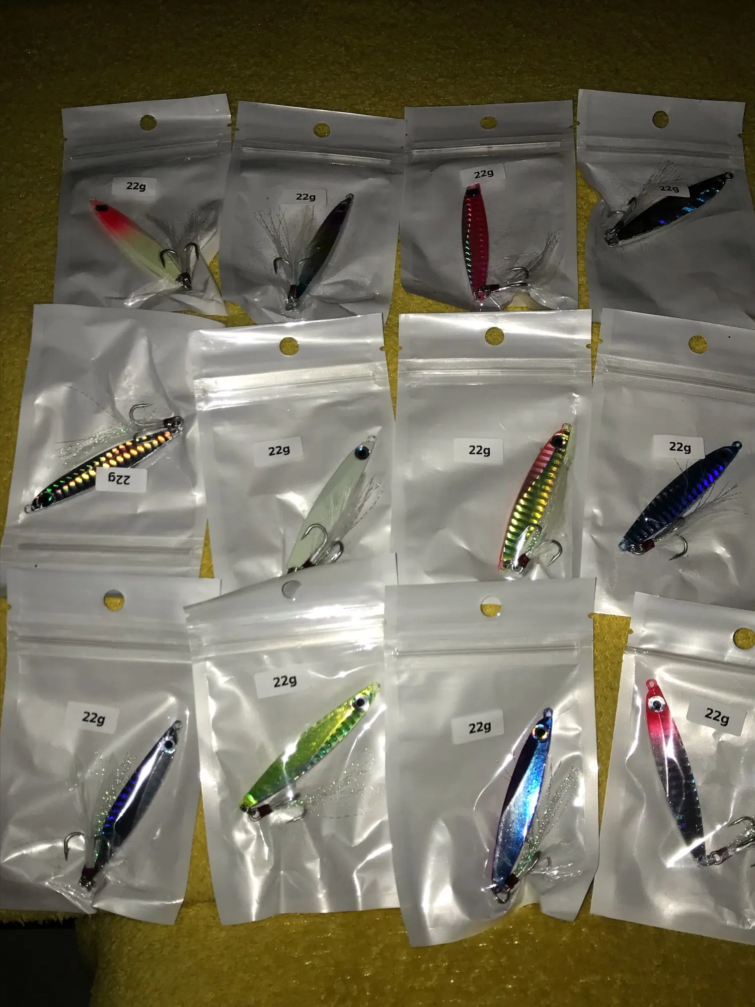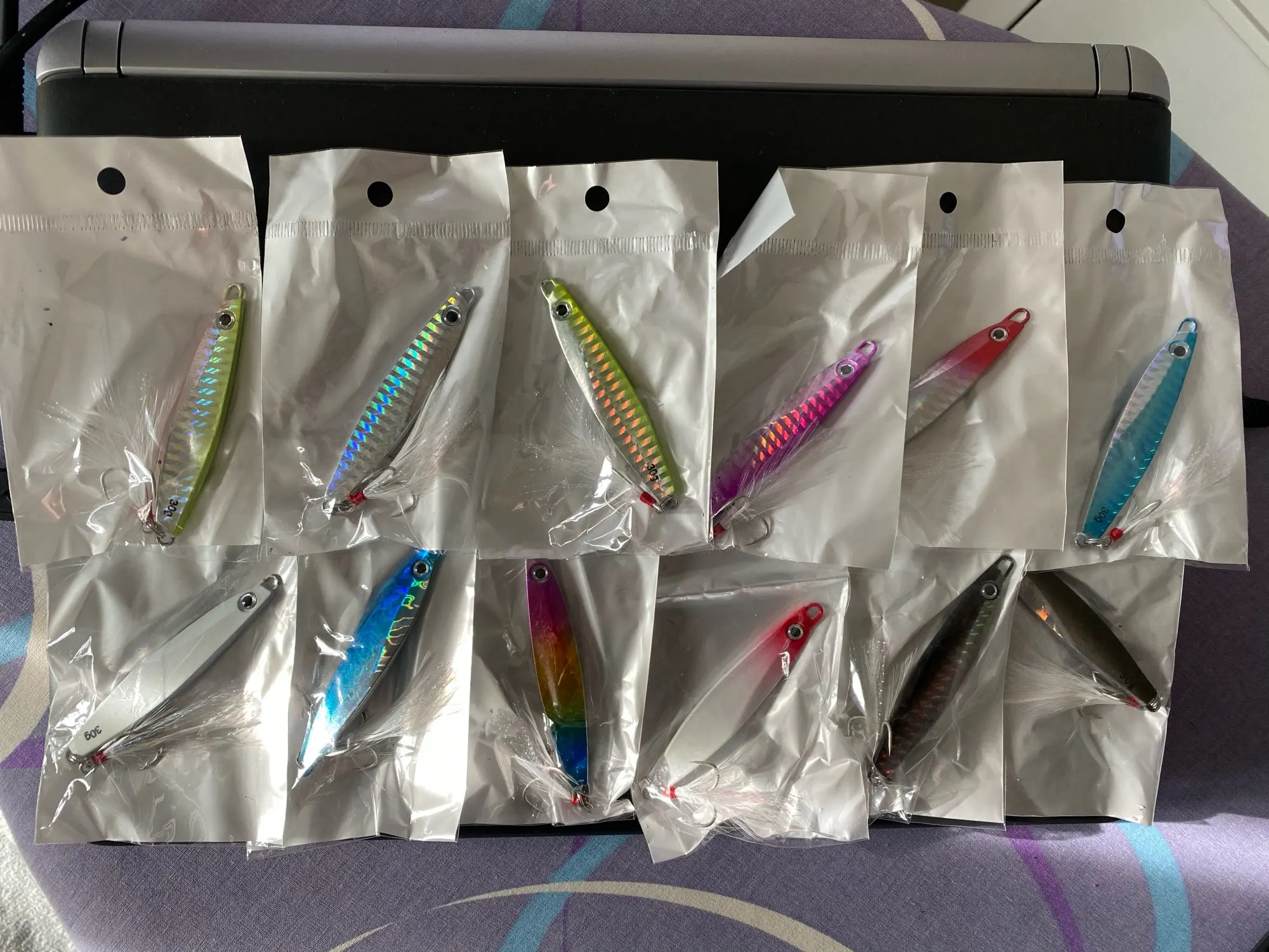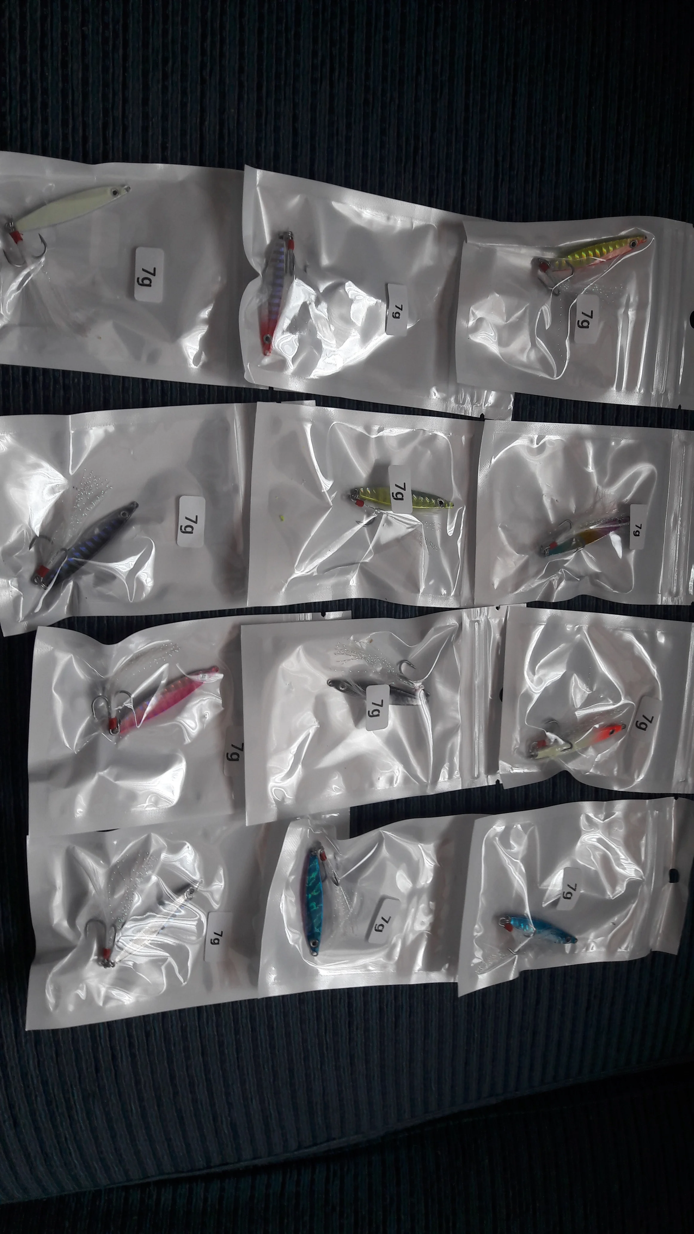 Доставка в течение 7 дней! Потрясающе! 12 наживок по 12 г, как описано, кажется хорошим качеством, изготовлено из металла, приятных цветов. Еще не пробовал их. Оставлю дополнительный отзыв после тестирования.