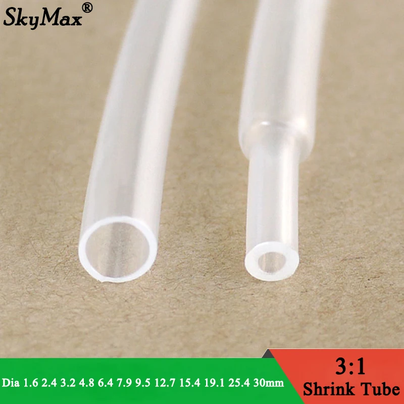 Прозрачная термоусадочная трубка 3: 1 с двойными стенками, диаметр клеевой трубки 1,6, 2,4, 3,2, 4,8, 6,4, 7,9, 9,5, 12,7, 15,4, 19,1, 30 мм, 1 м