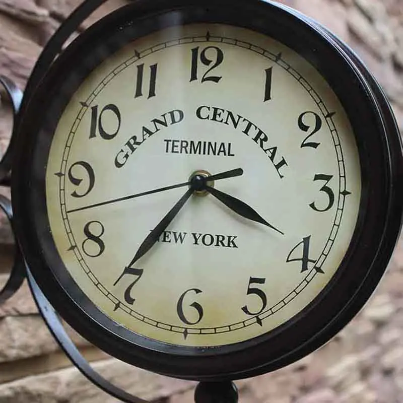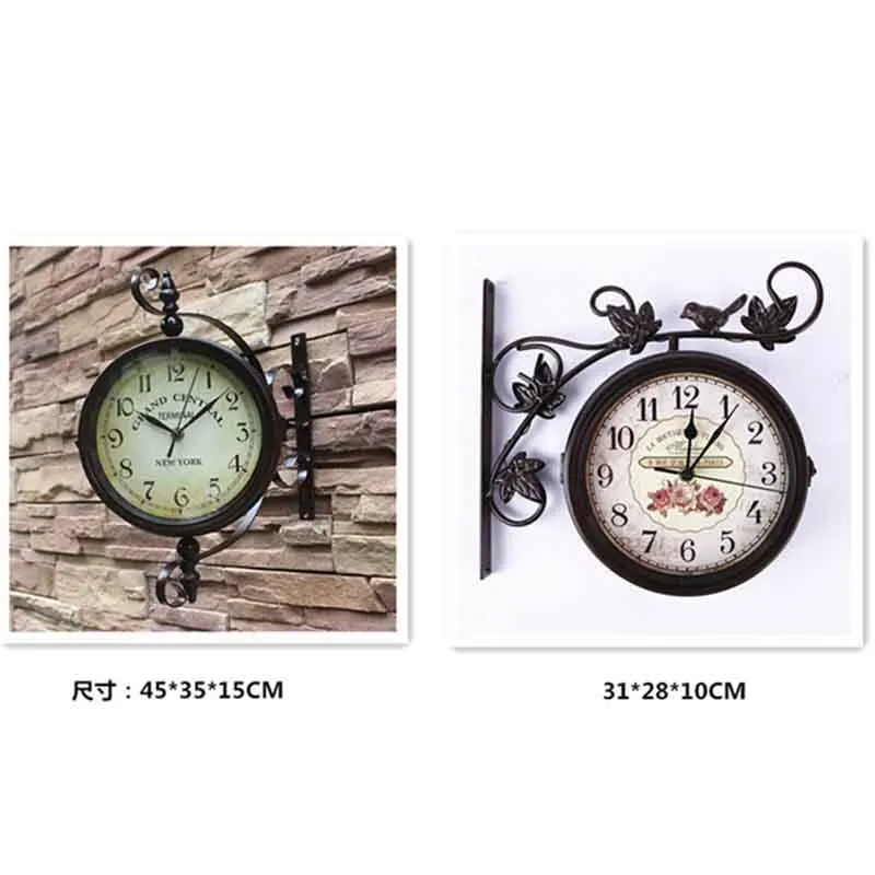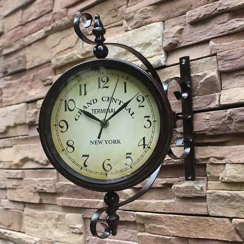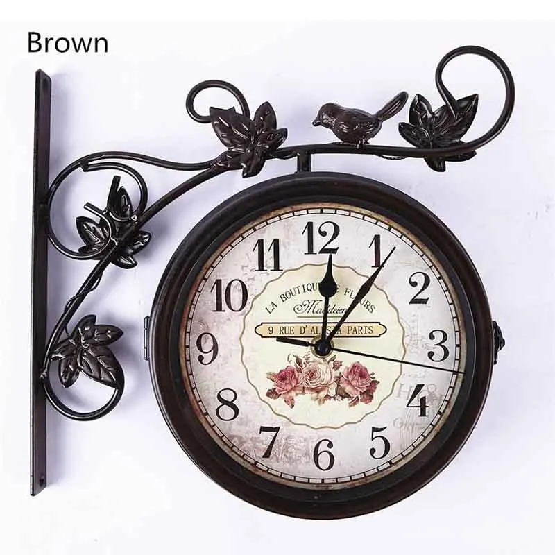 Винтажные настенные часы с железной рамой, коричневый Настенный декор для сада, двухсторонний металлический, стеклянный