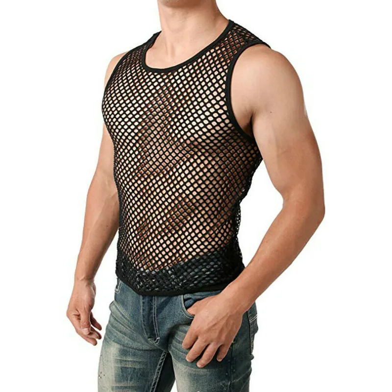 Мужская Сетчатая футболка, майка для тренировок в тренажерном зале, спортивный прозрачный сексуальный топ в сеточку, майка