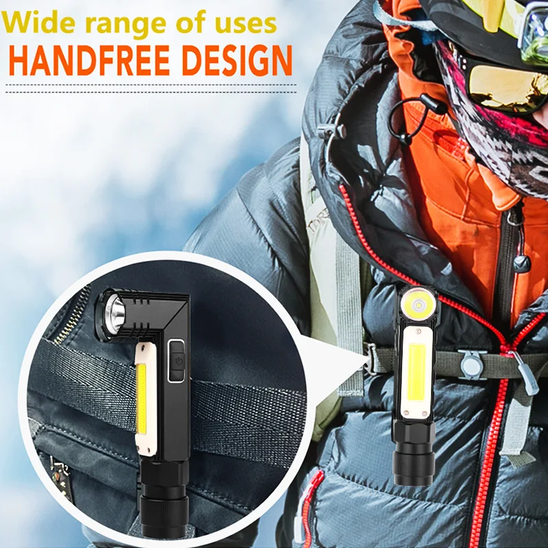 USB Перезаряжаемый тактический фонарь магнит 90 градусов поворотный зажим Водонепроницаемый COB Рабочий фонарь ручной фонарь с ремешком для фар