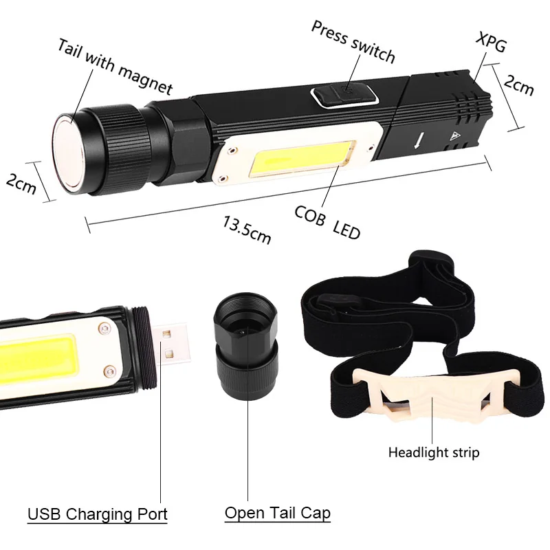 ★Ультра яркий ---XPG + COB красный и белый свет, легко осветить всю комнату! В 10 раз ярче, чем старые лампы накаливания. Умный фонарик напряжения со встроенной литиевой батареей становится 8000 люменов.