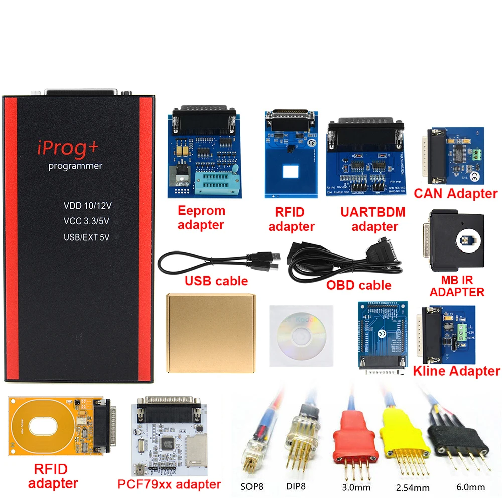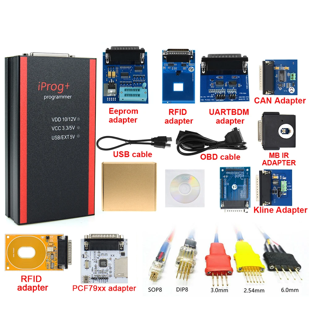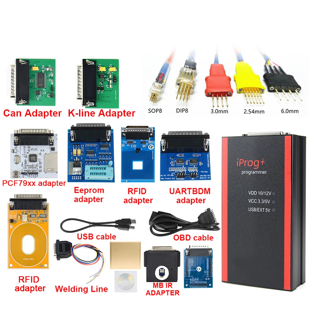 Программатор Iprog + Iprog Pro поддерживает IMMOкоррекцию пробега + сброс подушки безопасности до 2019 года с адаптерами для многих моделей автомобилей