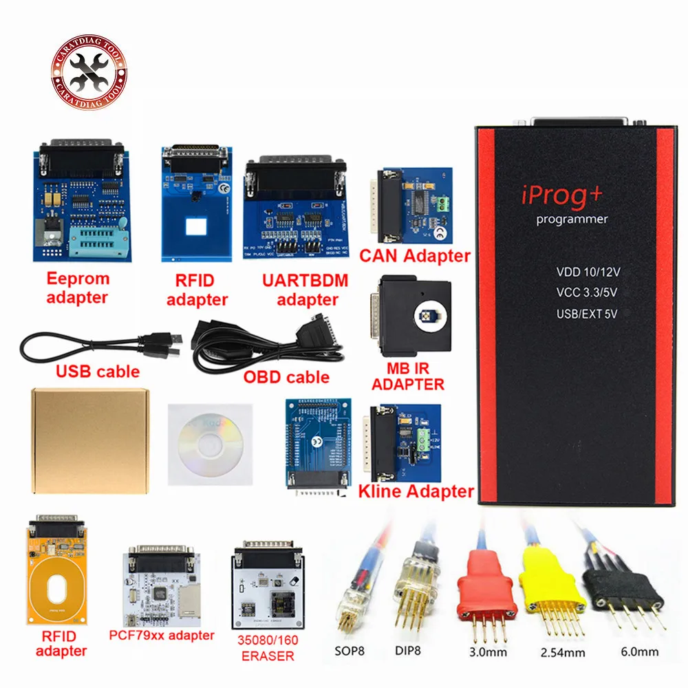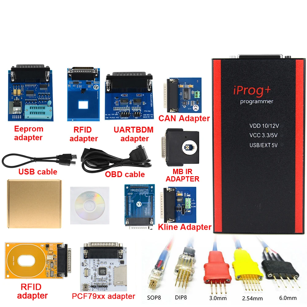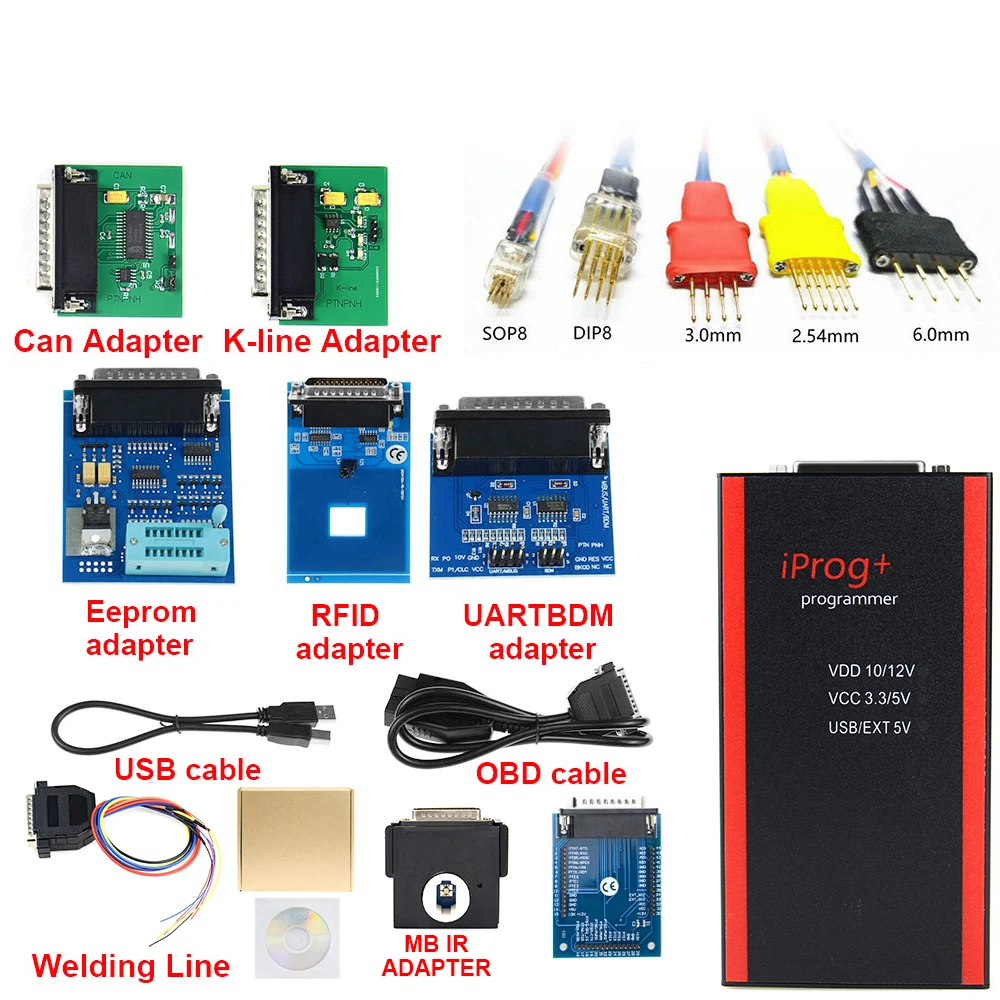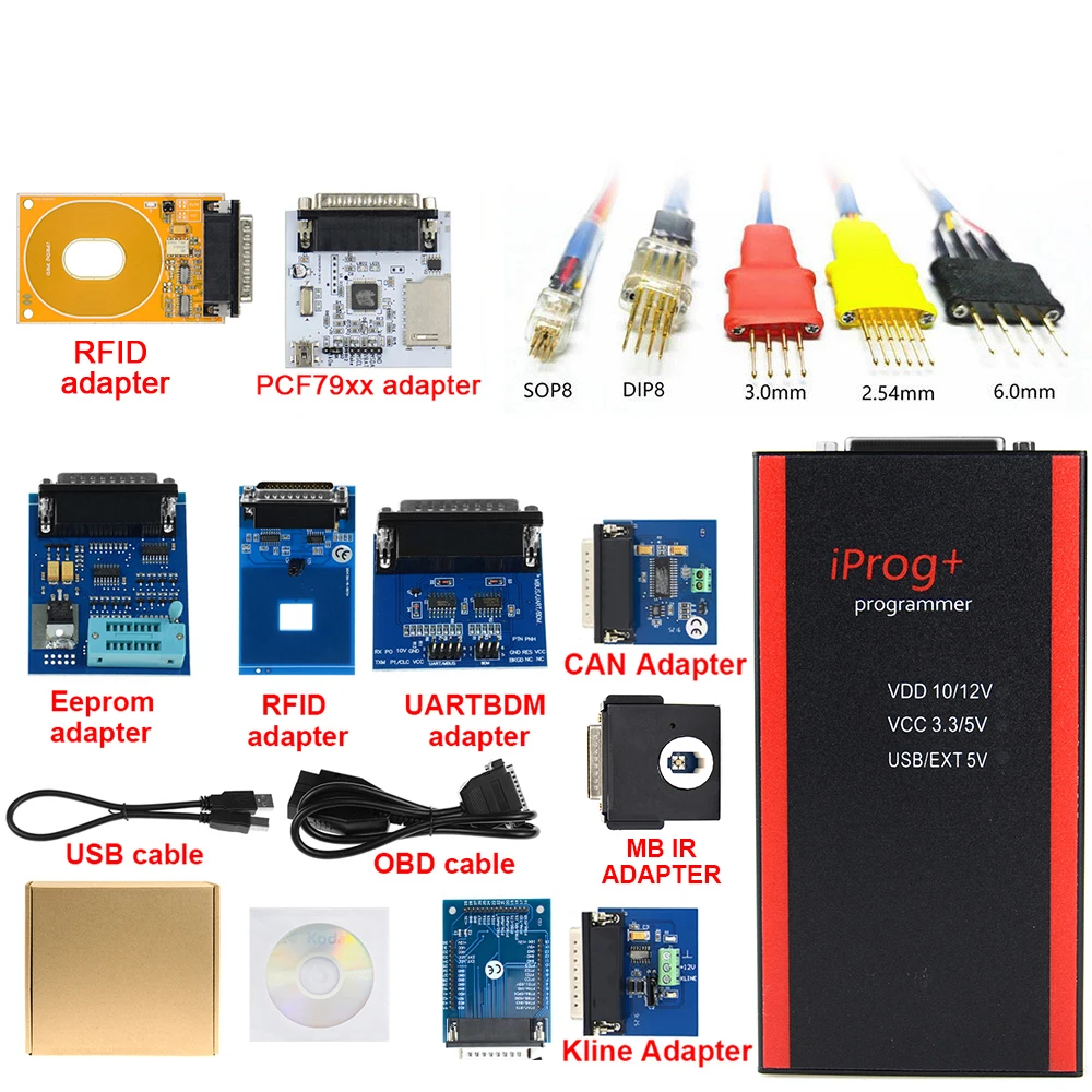 Программатор Iprog + Iprog Pro поддерживает IMMOкоррекцию пробега + сброс подушки безопасности до 2019 года с адаптерами для многих моделей автомобилей