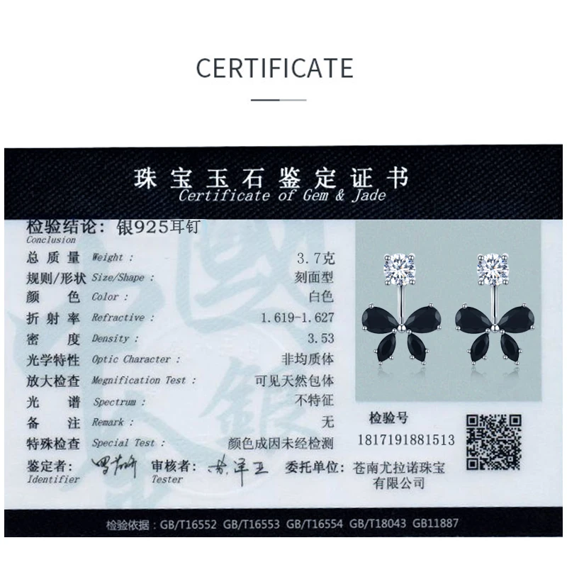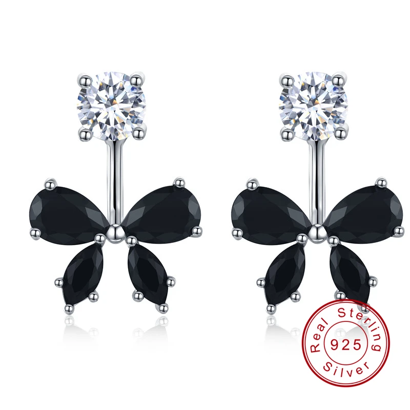Женские романтичные серьги-бабочки из стерлингового серебра 925 пробы с черной шпинелью, модные ювелирные украшения для помолвки I046