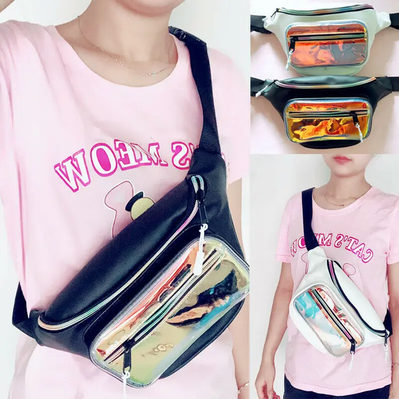 Женская поясная сумка с голографическим лазером из искусственной кожи, водонепроницаемая модная повседневная спортивная нагрудная сумка, 2019