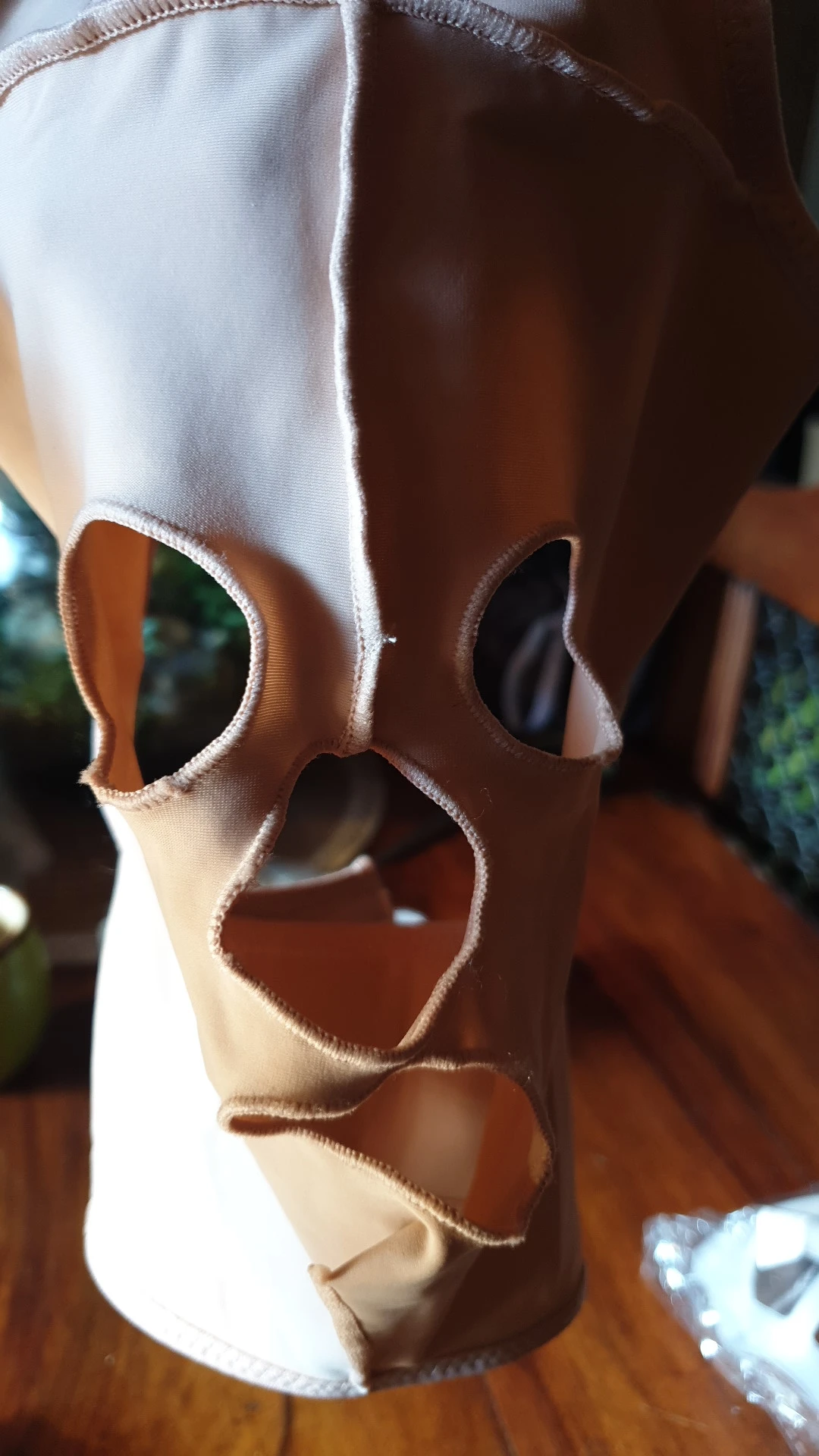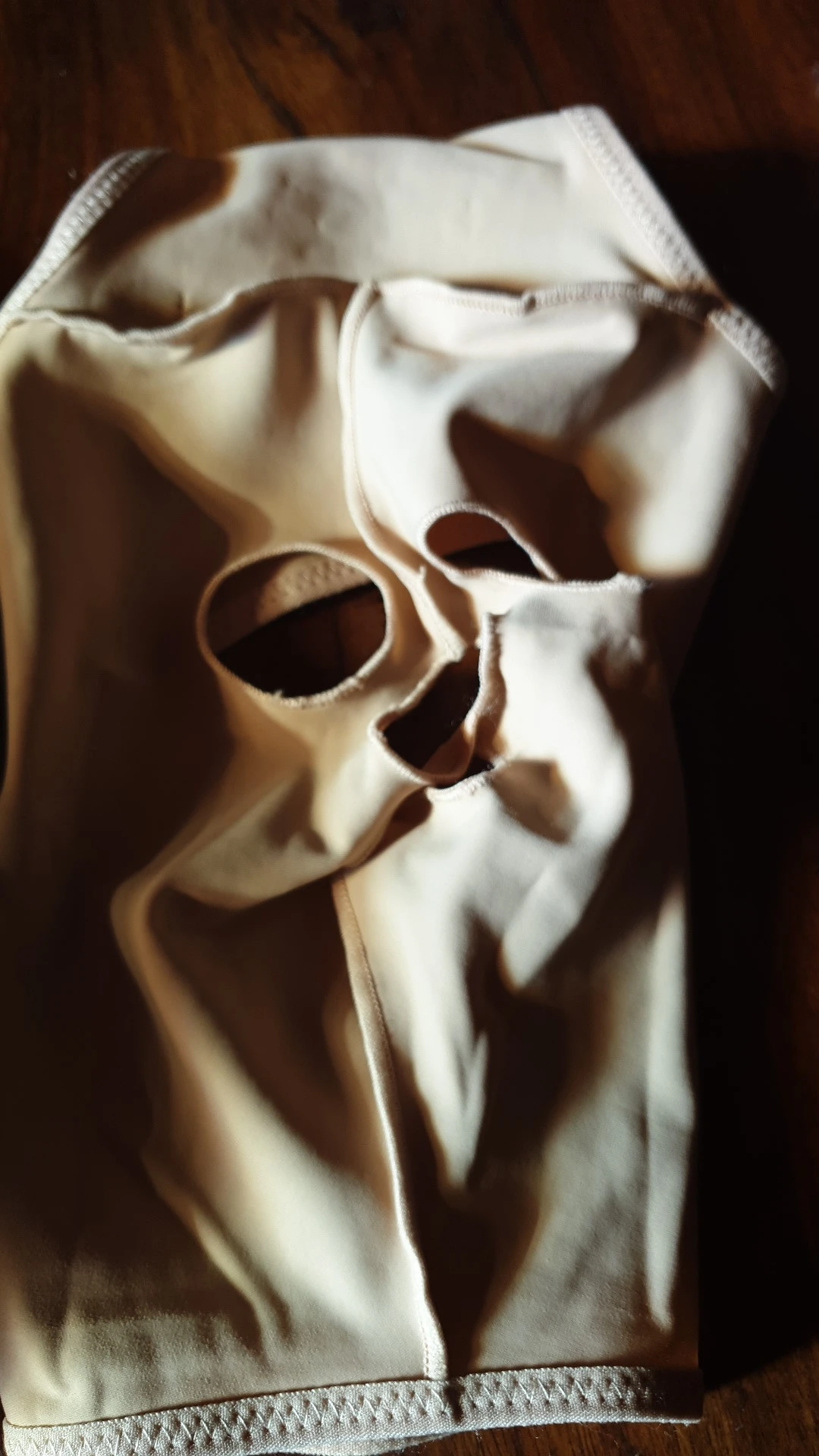 очень смешные труселя для лица. но ощущение неожиданно приятные. брала самую большую - надела норм, но на шее туговато.