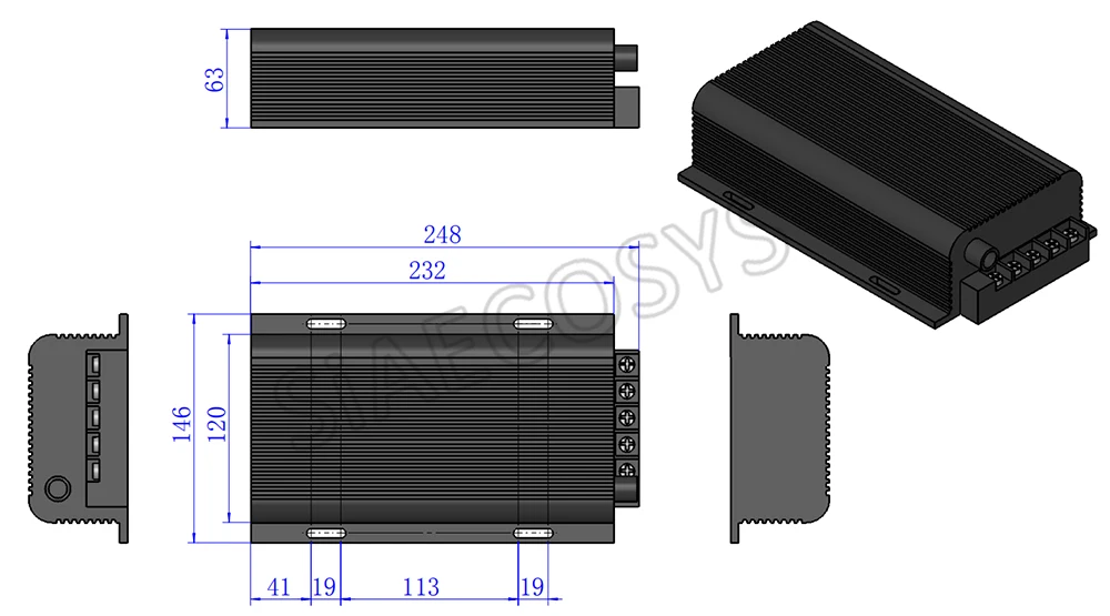 Вот чертеж контроллера Sabvoton SVMC, 247 мм * 146 мм * 62,5 мм