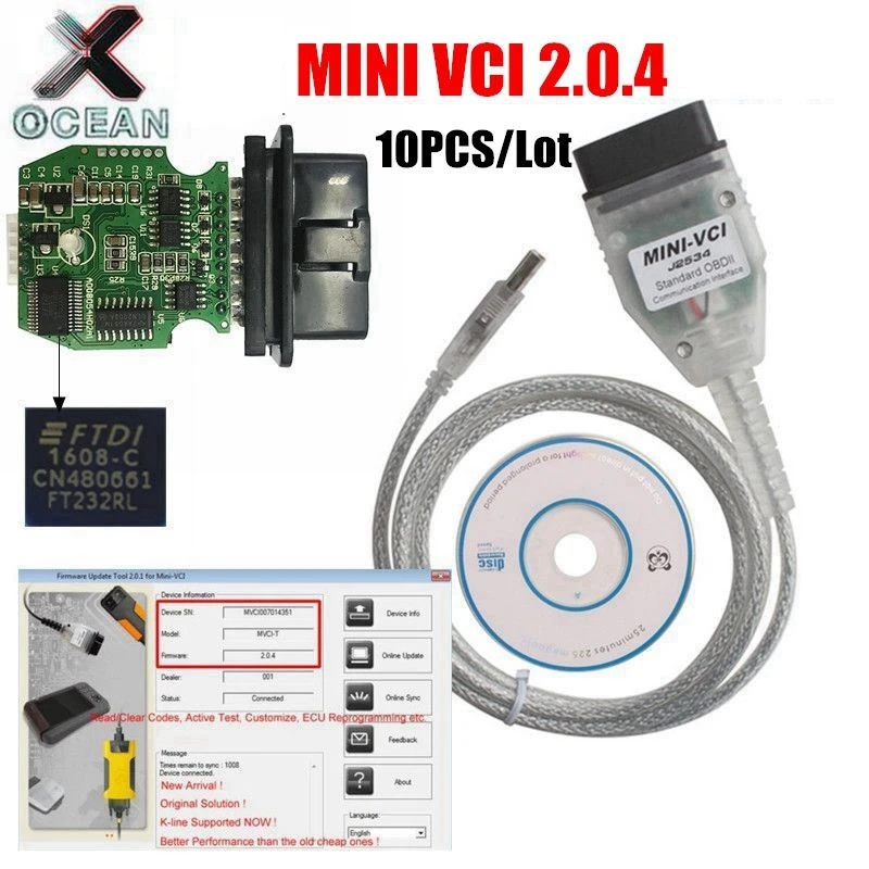 Новейшая версия V2.0.4 MINI VCI интерфейс для TOYOTA TIS Techstream minivci FT232RL чип J2534 OBDII OBD2 диагностический инструментЕсли вы хотите сбросить immo или произвести настройку на автомобили, нужно как минимум 201 FW с 201 FW, чтобы изменить печатную плату, так как она поддерживает VPW, И имеет дополнительный чип безопасности с другой стороны, Все эти простые клоны с поддержкой 1.4.1 FW поддерживают только протокол CAN, а Протокол K line VPW не поддерживается в 1.4.1 FW, и на печатной плате нет его деталей.