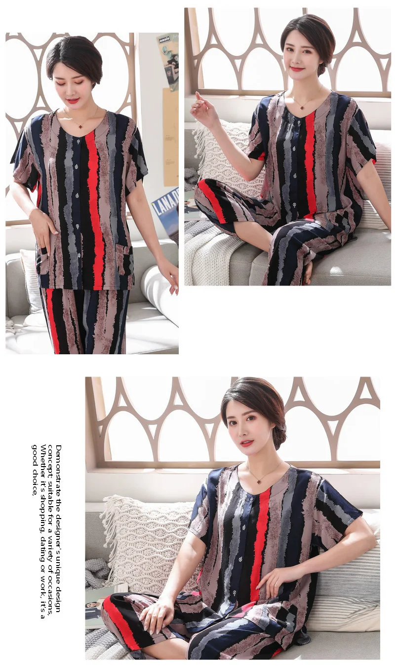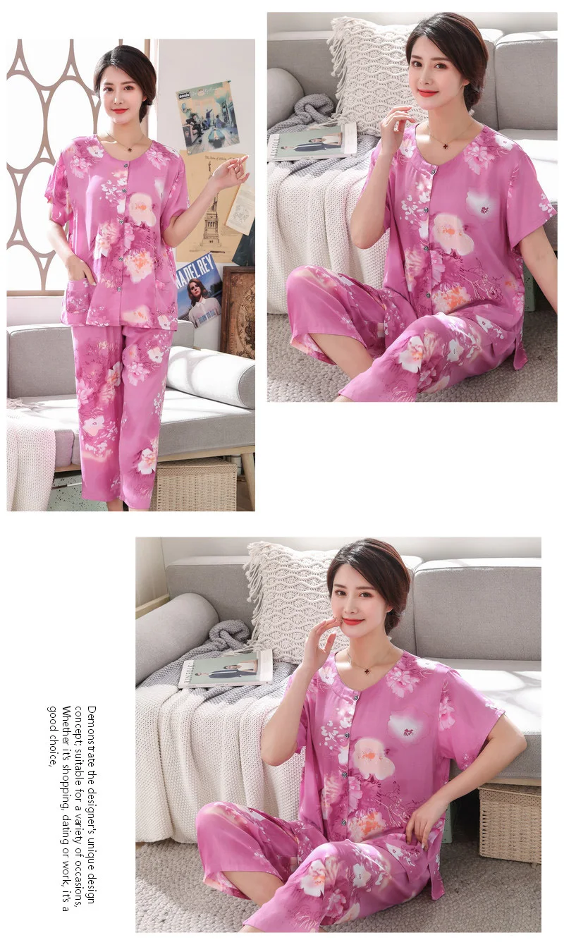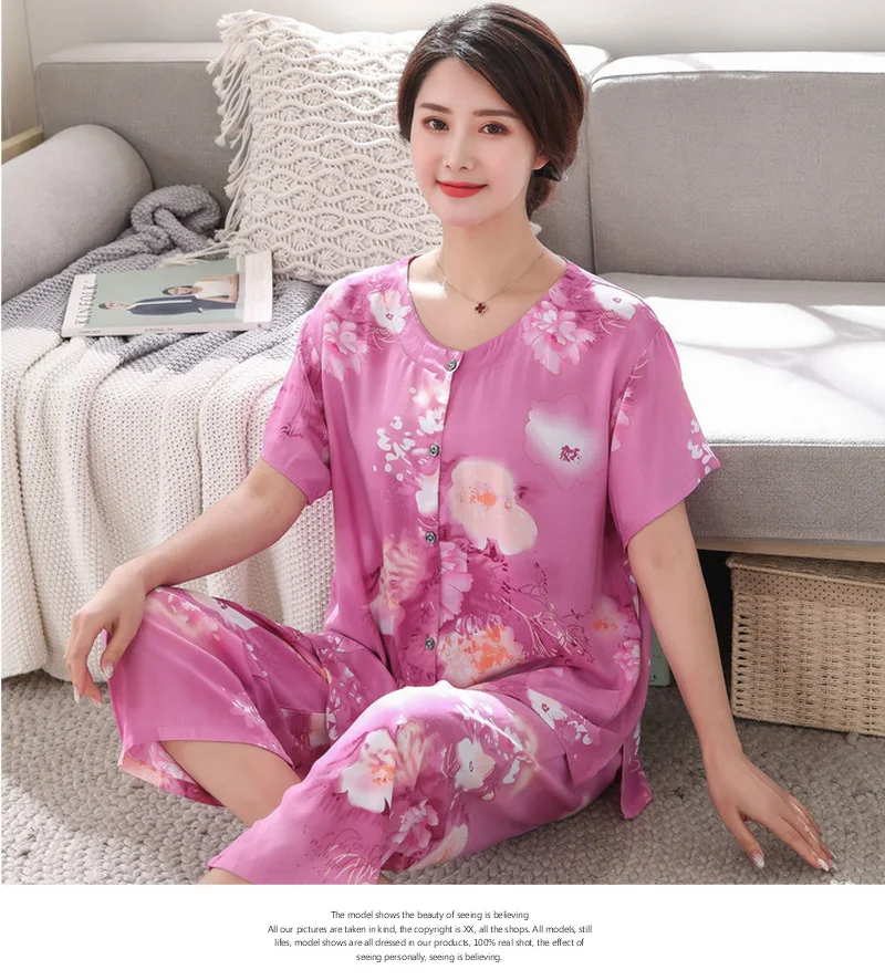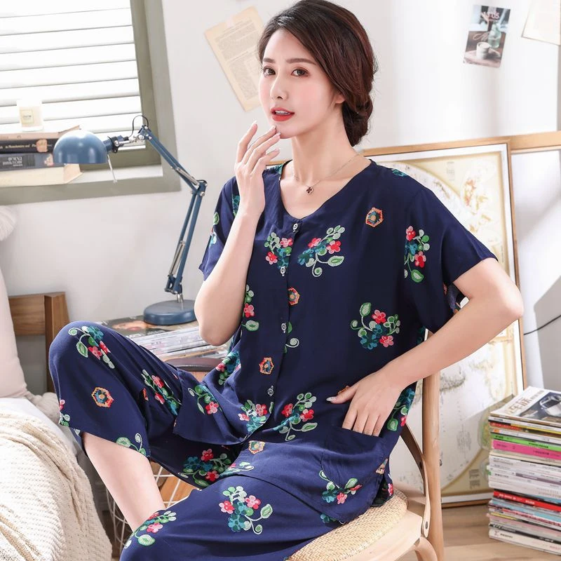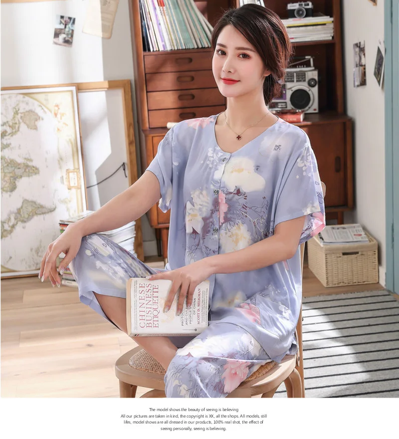 Женский хлопковый пижамный комплект из 2 предметов, летняя новая тонкая свободная Пижама с коротким рукавом и цветочным принтом, Повседневная Домашняя одежда, женская пижама 3XL